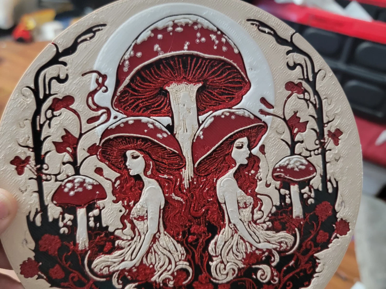 Mẫu tranh Nấm Hueforge độc đáo được thiết kế bằng Midjourney và Hueforge. Kích thước 200mm x 200mm. Thích hợp để treo tường. Hướng dẫn in chi tiết kèm theo. Liên hệ PrinterDoods trên Cults3D để có giấy phép kinh doanh.