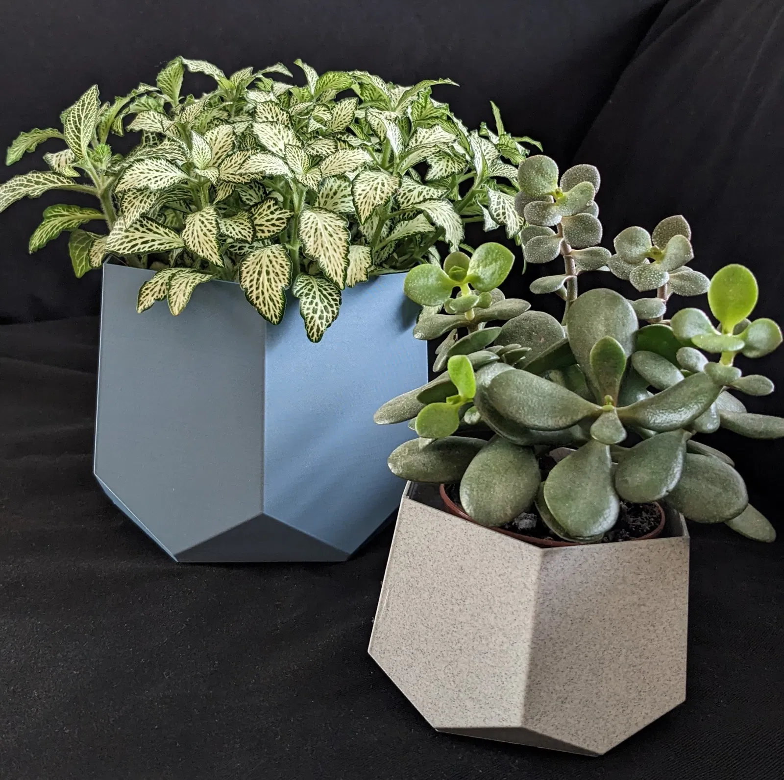 Thêm một chậu cây hình học nữa nè, làm từ PLA với hai màu Đá Cẩm Thạch Đen và Xanh Kim Loại. Kích thước tối đa cho chậu nhỏ bên trong là D=80 H=60, còn chậu lớn là D=120 H=110. Tuyệt vời cho việc trang trí nhà cửa và trồng cây cảnh.
