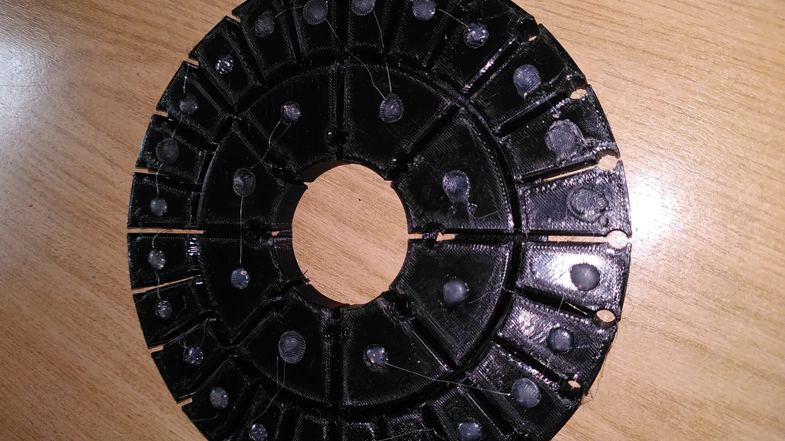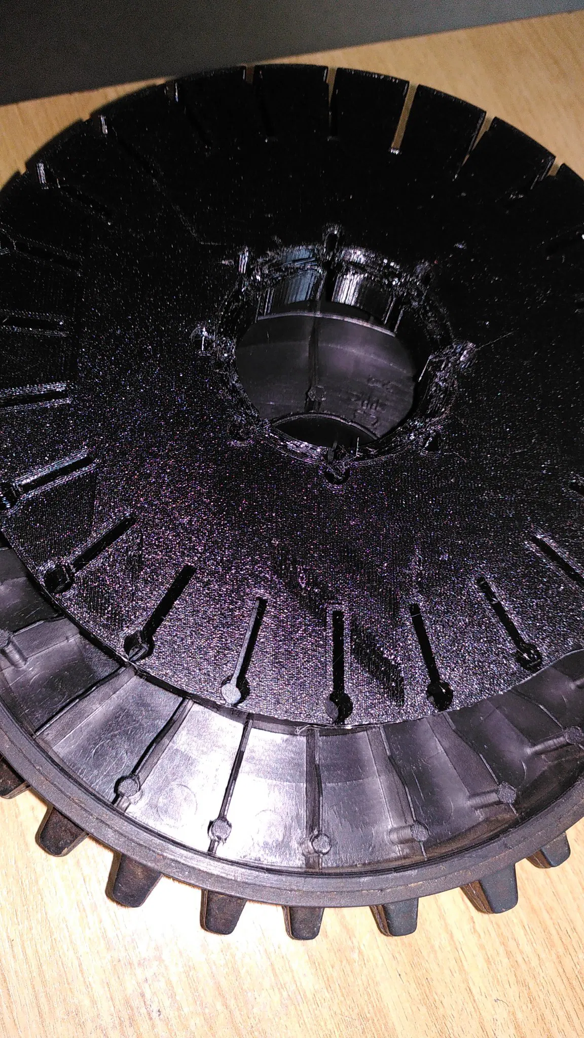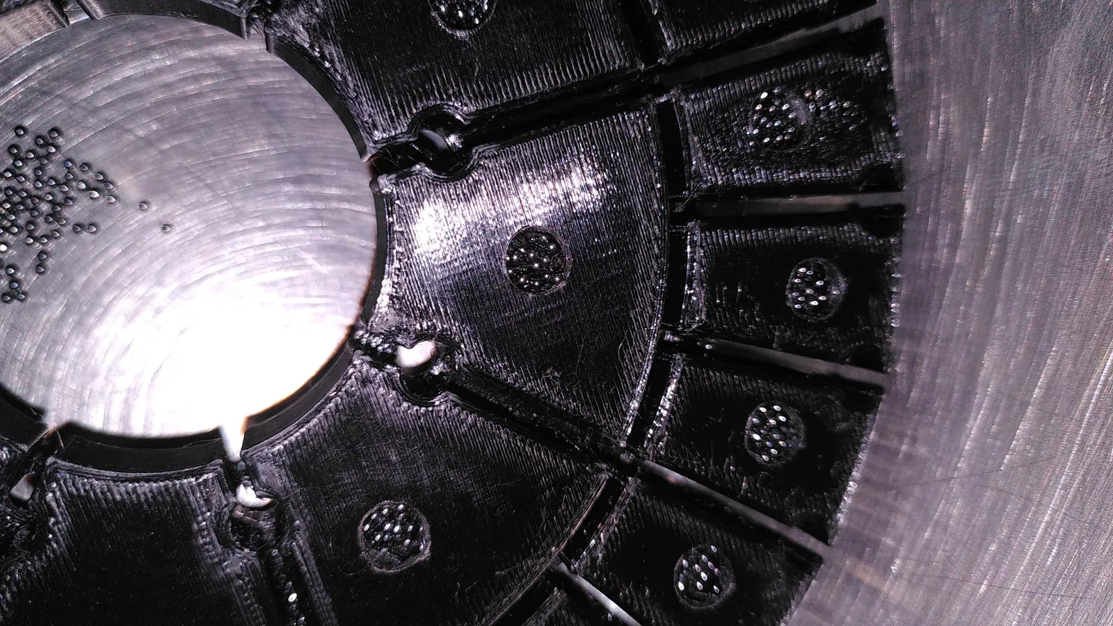 - lấp đầy hoàn toàn các buồng bằng các viên bi chì (cho một bánh xe, tôi cần khoảng 1200g viên bi chì đường kính 1,5mm)