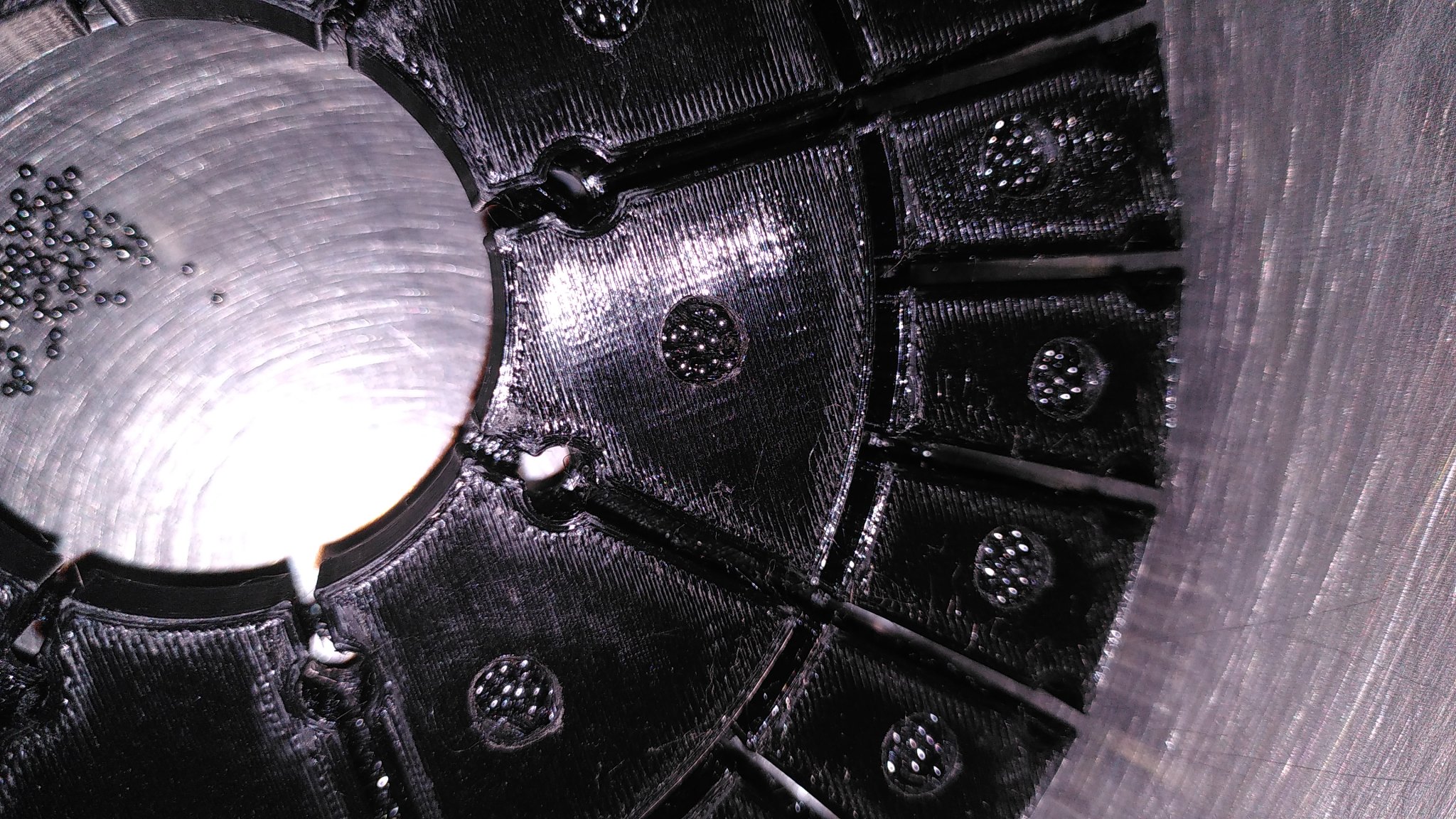 - hoặc sử dụng một vật liệu nhẹ hơn để lấp đầy các buồng Tôi đã in bình chứa bằng PETG, nhưng PC hoặc ABS cũng sẽ hoạt động. Có thể PLA không đủ chịu nhiệt cho việc sử dụng ngoài trời dưới ánh nắng mặt trời.