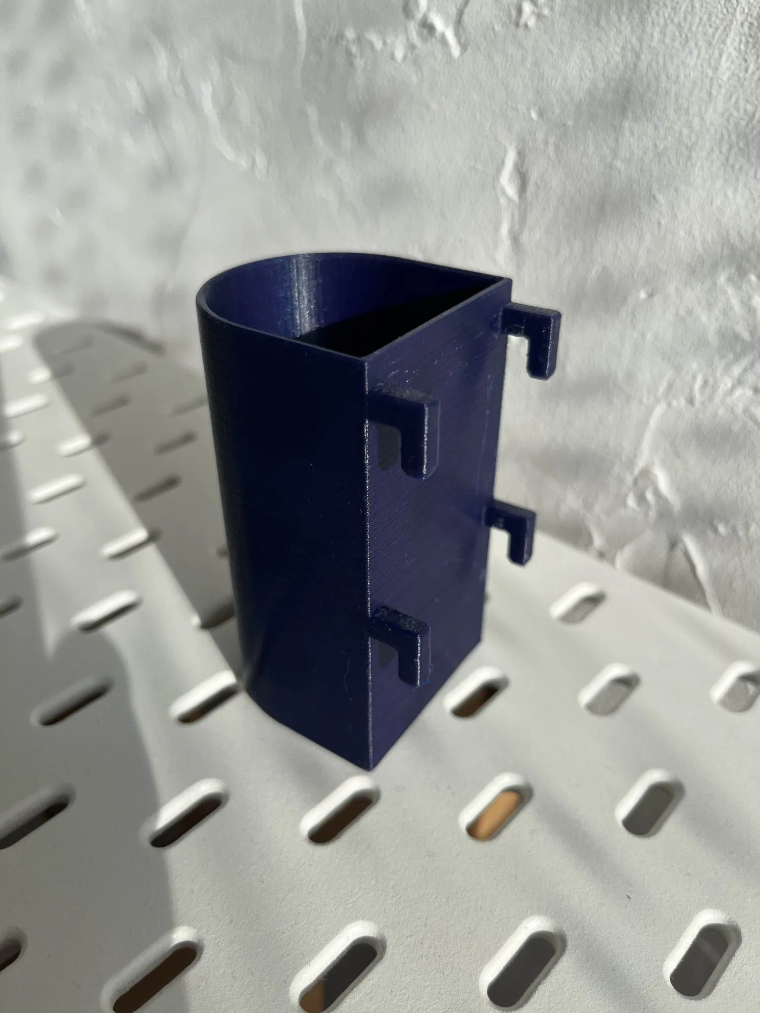 Hộp đựng bút chì SKADIS kích thước 44x84mm với thiết kế bo tròn, tiện lợi để cất giữ bút, viết, dao rọc giấy và nhiều vật dụng khác trên bảng SKADIS. Infill 30% và có support cho phần móc.