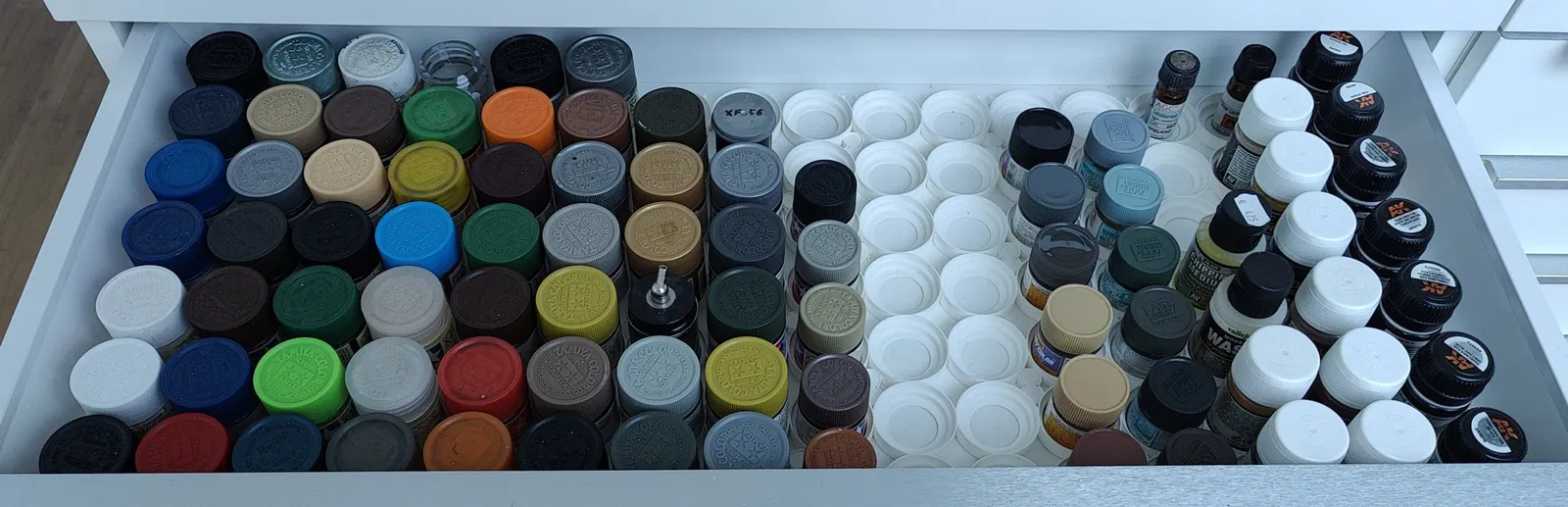 Giới thiệu một hệ thống tổ chức đa năng để sắp xếp gọn gàng các chai sơn mô hình của bạn trong ngăn kéo. Thiết kế module của chúng tôi cho phép bạn tùy chỉnh cấu hình để phù hợp với nhu cầu cụ thể của mình, dù là bố cục 1x2, 1x4, 2x2 hay 2x4. Điều kỳ diệu xảy ra với các đầu nối thông minh của chúng tôi, khớp nối liền mạch từ phía trên.