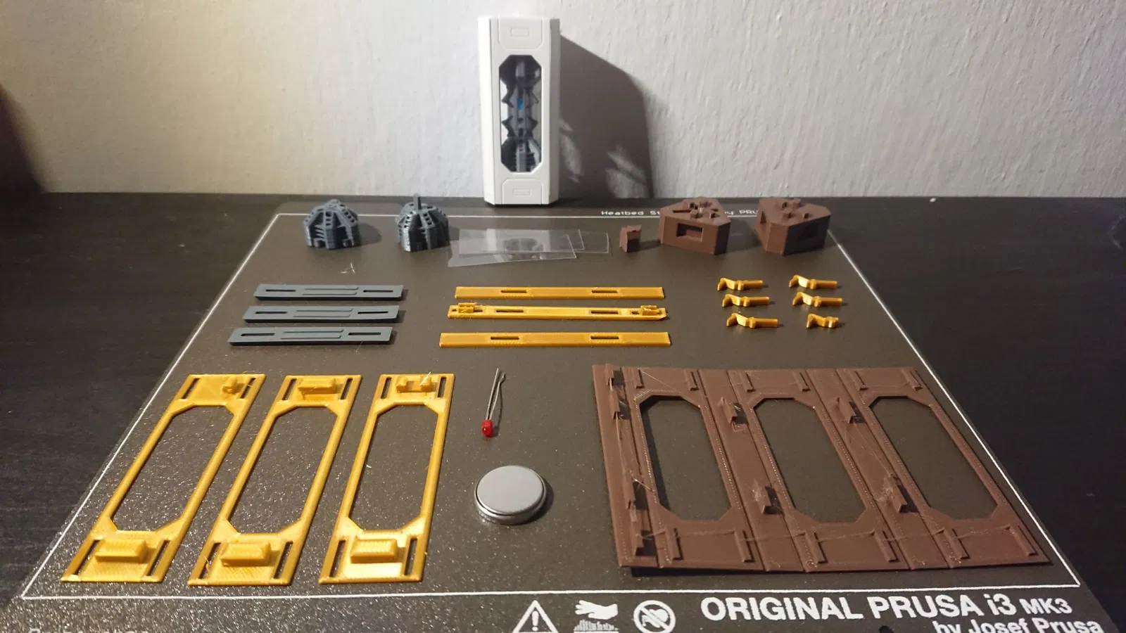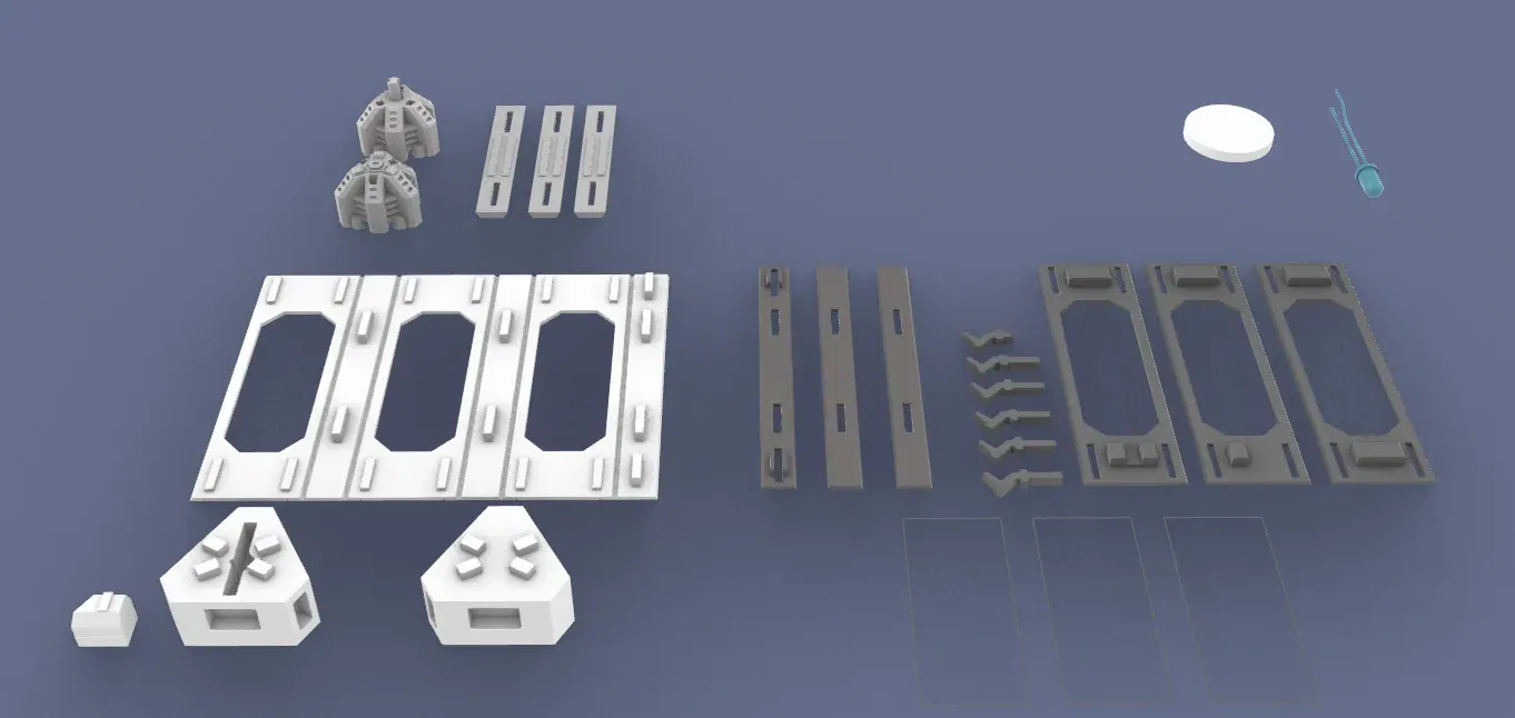 bình chứa vật chất phản vật chất có thể được in trên bất kỳ máy in 3D nào, vì mô hình được thiết kế để phù hợp ngay cả trên các bề mặt máy in nhỏ và có thể được in mà không cần các chức năng như in màu, in đa vật liệu, và mỗi phần có thể dễ dàng được in mà không cần hỗ trợ. Bạn không cần bất kỳ loại keo nào để lắp ráp đèn miễn là bạn nhấn vào các cài đặt chính xác. Tôi cũng đã đăng hướng dẫn lắp ráp đơn giản trong hình ảnh. Ngoài các phần đã in, bạn chỉ cần một viên pin phẳng 3v cổ điển (CR2025), một diode LED 3v và 3x tấm nhựa cắt ra. Cũng có một mẫu để hình thành một cánh tay của diode LED.