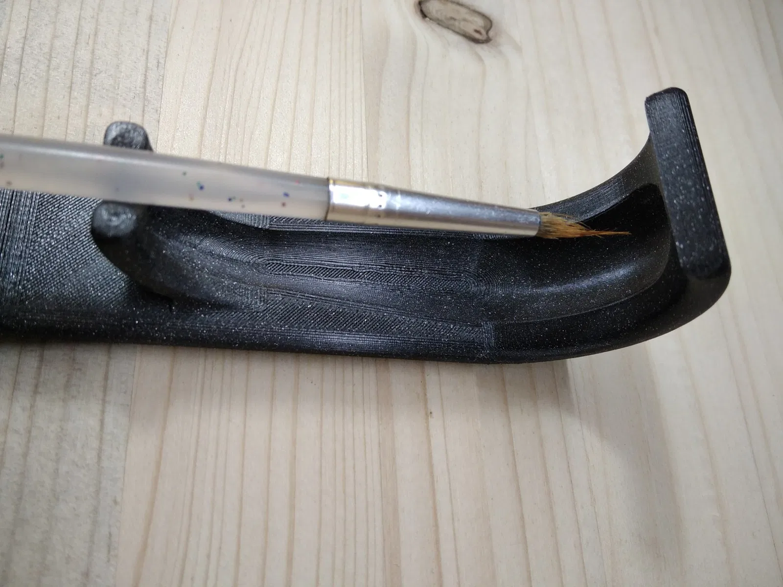 Kệ cọ vẽ với đế hứng nước nhỏ giọt. Thiết kế tối giản, thanh lịch, giúp môi trường làm việc thoải mái hơn. Có thể điều chỉnh kích thước cho cọ lớn. Khuyến nghị in với đầu phun 0.25 và chế độ chi tiết/siêu chi tiết.