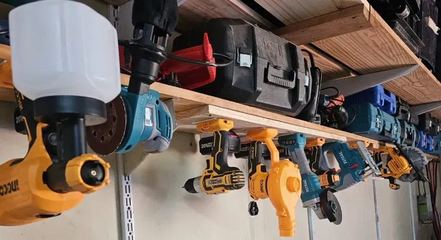Một khung gá để gắn các máy pin hiệu Ingco hoặc Total. Bản in với độ cao lớp 0.2mm, mật độ vật liệu 50%, ưu tiên 6 lớp thành để tăng độ cứng.