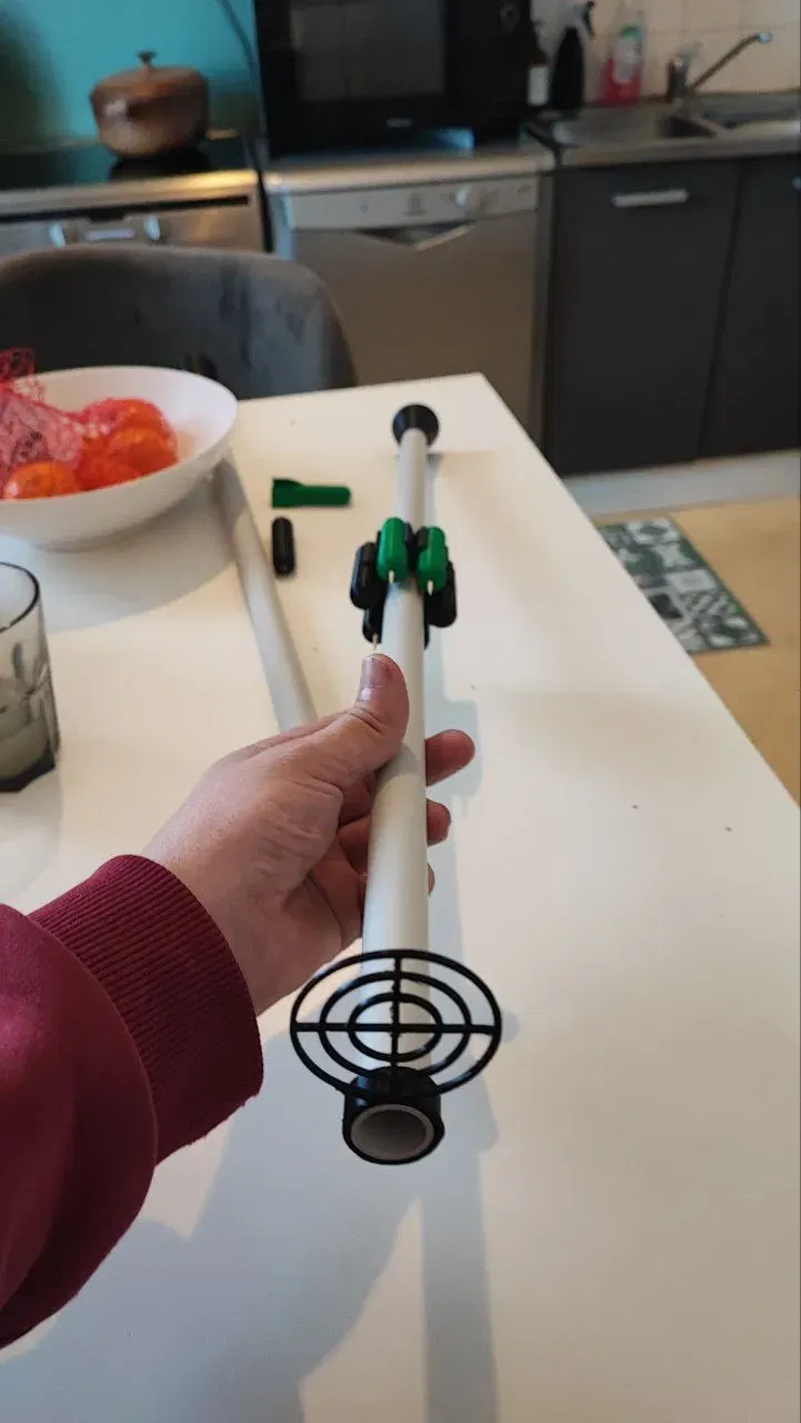 Phụ kiện để tự làm ống súng bụi (sarbacane) với ống IRL đường kính 20. Bao gồm: ống ngắm, băng đạn, đầu đạn và bộ phận thổi. In không cần support.