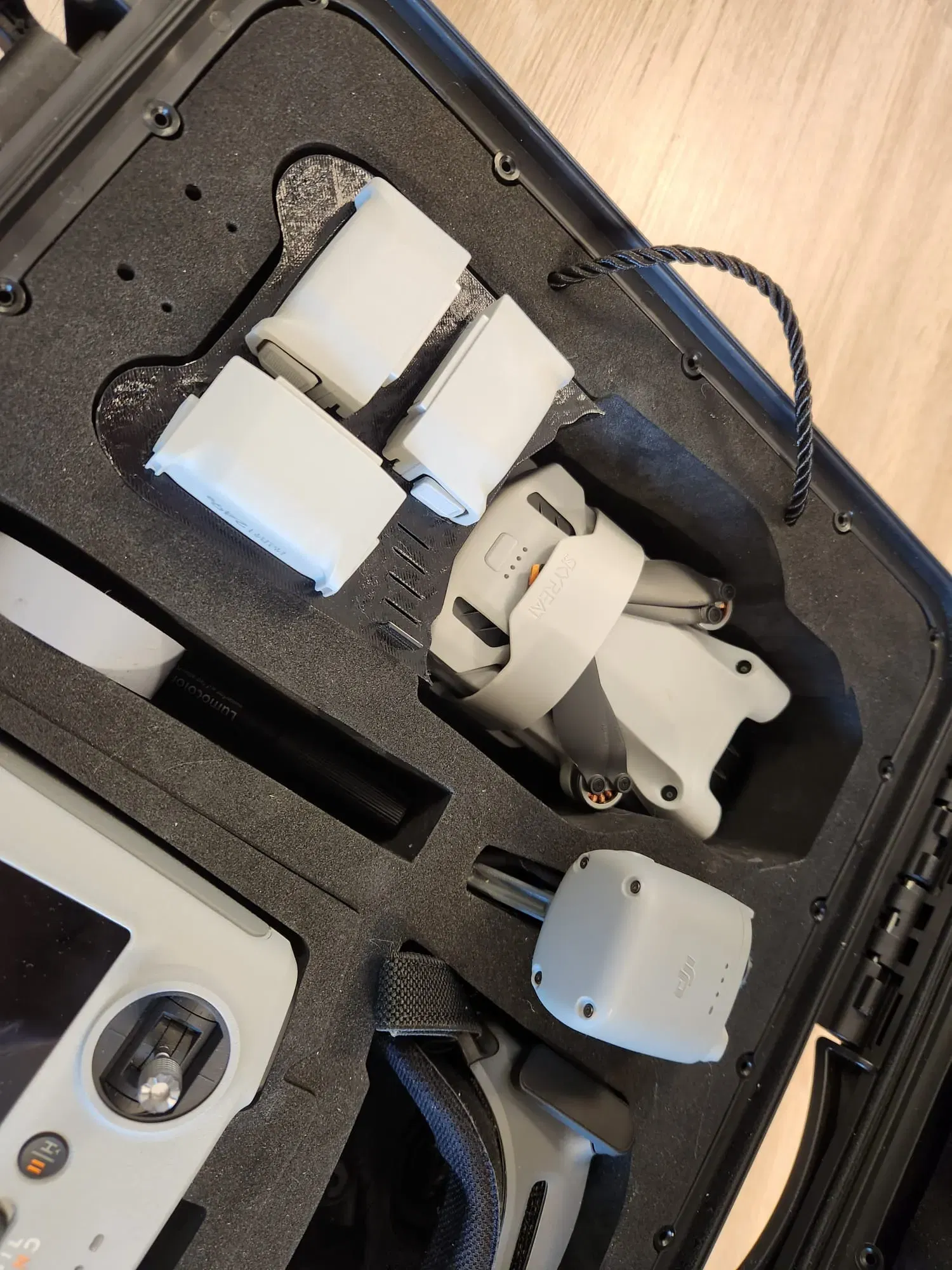 Tui đã mất nhiều giờ để tìm một cái hộp đựng hoàn hảo cho chiếc DJI Mini 3 Pro của mình và không tìm được cái nào có thể chứa cả DJI RC Pro/DJI RC/RC N1/Goggles 2/Integra/DJI RC Motion 2 cùng các phụ kiện. Cuối cùng, tui đã quyết định chọn cái hộp này, vốn được thiết kế cho DJI Mavic 3 Pro/Mavic 3 Classic/DJI Mavic 3/Cine/Combo và đơn giản là thiết kế một cái khay lót để chiếc Mini 3 Pro của tui được cất giữ an toàn, không bị bay lung tung, và tui có thể nhanh chóng lấy 3 cục pin và vài thẻ nhớ SD khi cần.