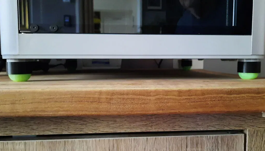 Tui bỏ ra cả đống tiền (mà coi bộ uổng ghê) cho bộ chân chống rung chính hãng của BambuLabs. Mua 1 lần mà được tới 2 bộ lận (trời ơi đất hỡi, tui có mỗi cái máy in hà), mà xài dở ẹc hà. Nó gắn không có khít, rồi cứ rớt ra hoài khi tui cố gắng đặt cái máy in lên đó - mà lỡ có đặt được lên rồi thì đừng có mơ mà nhúc nhích cái máy nha, nó tụt ra liền hà!