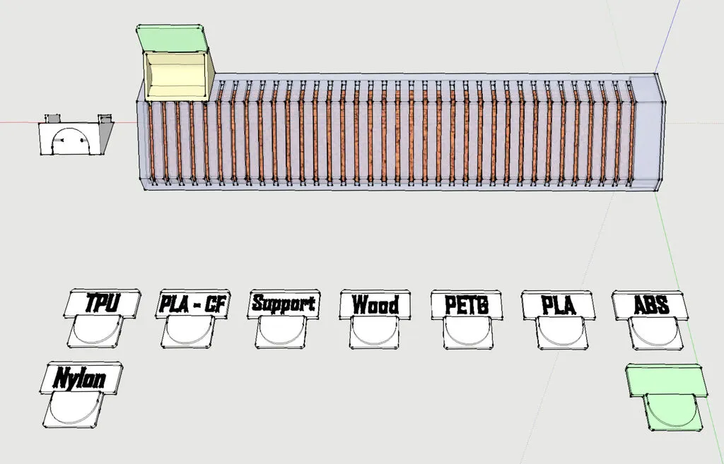 Bạn cũng có thể nhìn rõ màu filament mình đang có, và còn lại bao nhiêu trên cuộn. Cái duy nhất thiếu sót là làm sao để nhận biết vật liệu filament là gì mà không cần mở ra xem mặt bên của cuộn. Tui có ABS trắng, PETG trắng, với loại PLA trắng quen thuộc. Để chúng cạnh nhau là bạn sẽ khó mà phân biệt được nếu không nhìn cái nhãn.