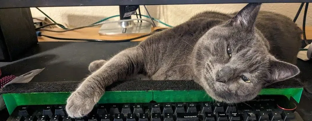 Cái chắn bàn phím này được thiết kế để ngăn mèo của bạn nằm lên bàn phím, nhưng nó chưa hoàn thiện và có vài điểm cần cải thiện. File nguồn được cung cấp để bạn tham khảo và lấy cảm hứng.