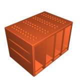 Cái organizer này có thể chứa được 4 thiết bị, còn mấy cái rãnh ở dưới đáy có thể luồn dây có đầu RJ-45 hoặc nhỏ hơn để quản lý dây cáp cho ngon lành. Bạn có thể scale cái mẫu này lên nếu muốn luồn dây lớn hơn qua mấy cái rãnh đó nha. Do mấy thiết bị này tỏa nhiệt cũng khá, nên tui có thiết kế lỗ thông hơi và in bằng PETG, xài tới giờ chưa thấy có vấn đề gì.