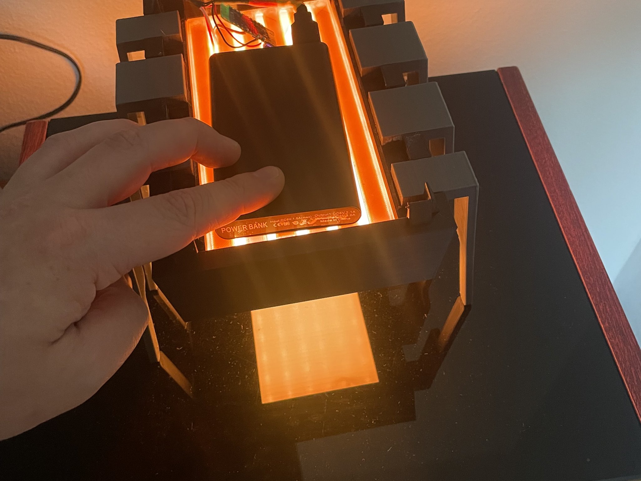 Tôi sử dụng ESP 8266 WeMos D1 mini (aliexpress ~1,80€), dải LED WS2812B (60 LED/M) và một cục sạc dự phòng nhỏ (Đừng vận hành mà không có sự giám sát, nó tạo ra nhiệt, sử dụng có rủi ro của riêng bạn (; )