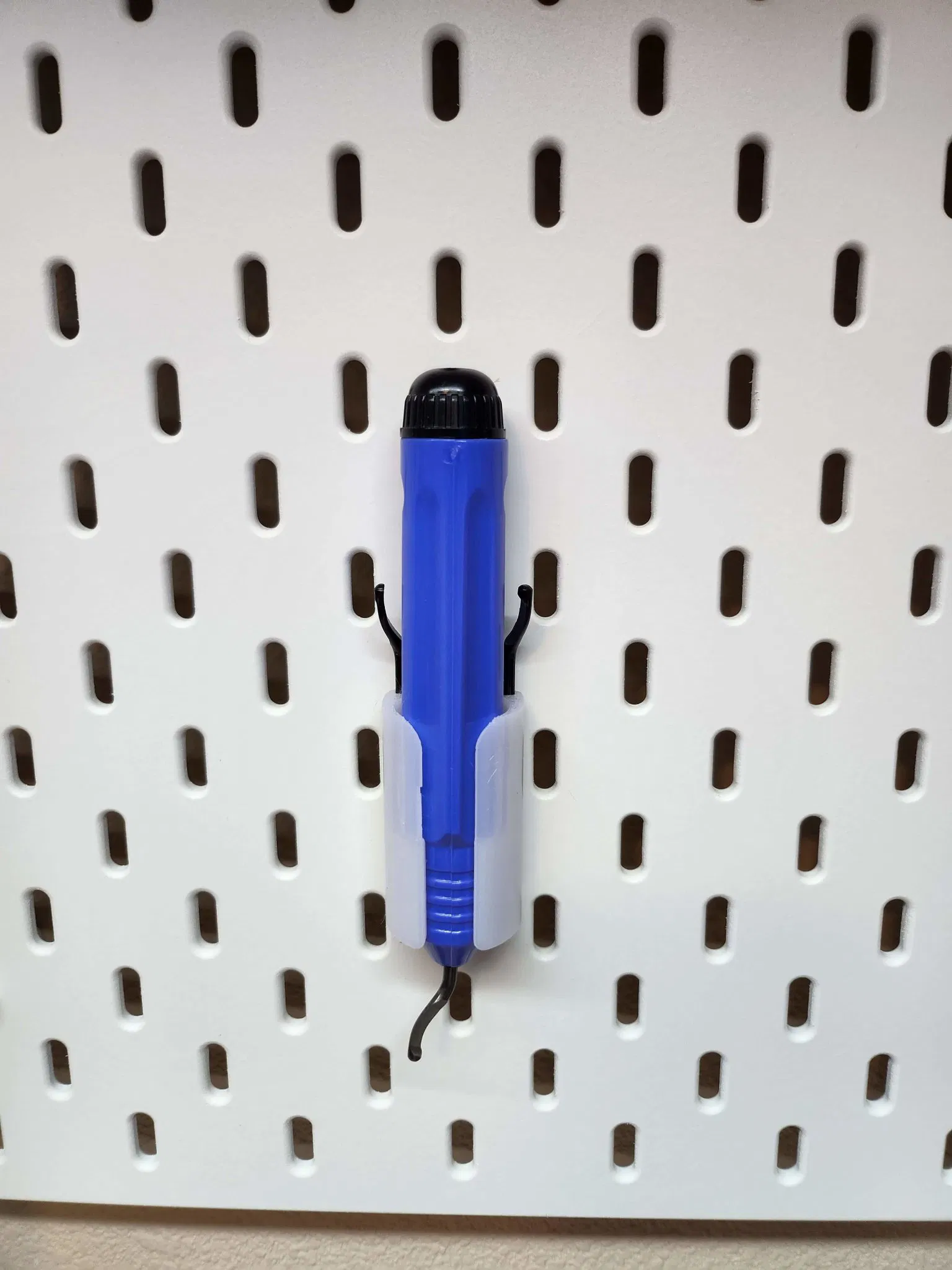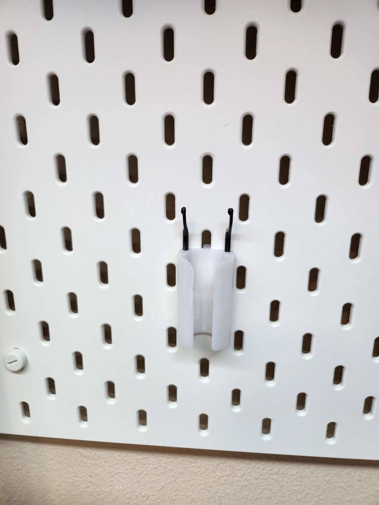 Đây là bản phối lại của giá đỡ dao rọc giấy để dùng với bảng pegboard SKADIS của IKEA. Phiên bản này có thêm các lỗ để chứa một vài lưỡi dao dự phòng, đồng thời giữ cho nó gọn gàng và nhỏ nhắn như bản gốc, đó là điều thu hút tui ngay từ đầu.
