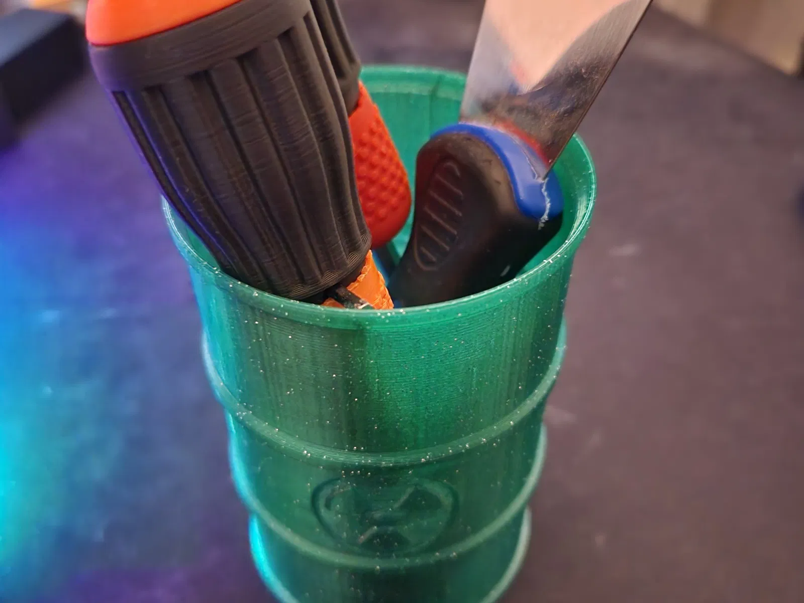 Tui làm cái đế cắm bút và phụ kiện này theo yêu cầu của một người bạn, lấy cảm hứng từ thùng rác hóa chất. Kích thước là 73x73x110. Hàng xịn xò cho dân 3D print nè!