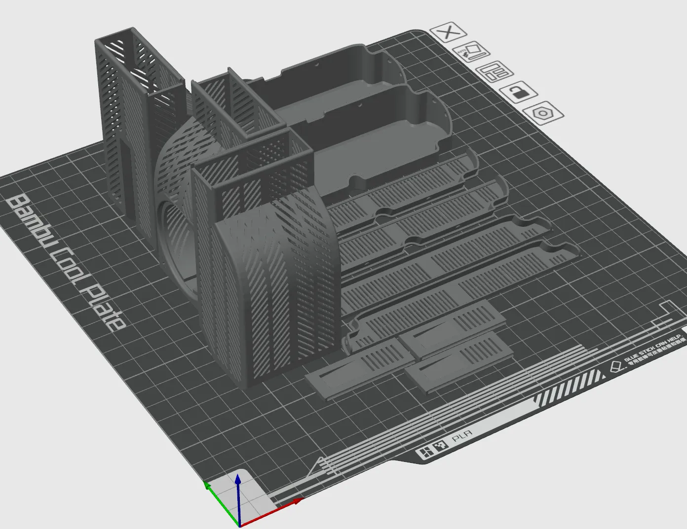 Kết hợp khay hút ẩm AMS và bộ Dry Pod (2 cái thường, 1 cái có ẩm kế) thành một bản in duy nhất. Hệ thống hoạt động hiệu quả, giữ độ ẩm thấp trong AMS ngay cả trong môi trường khắc nghiệt.