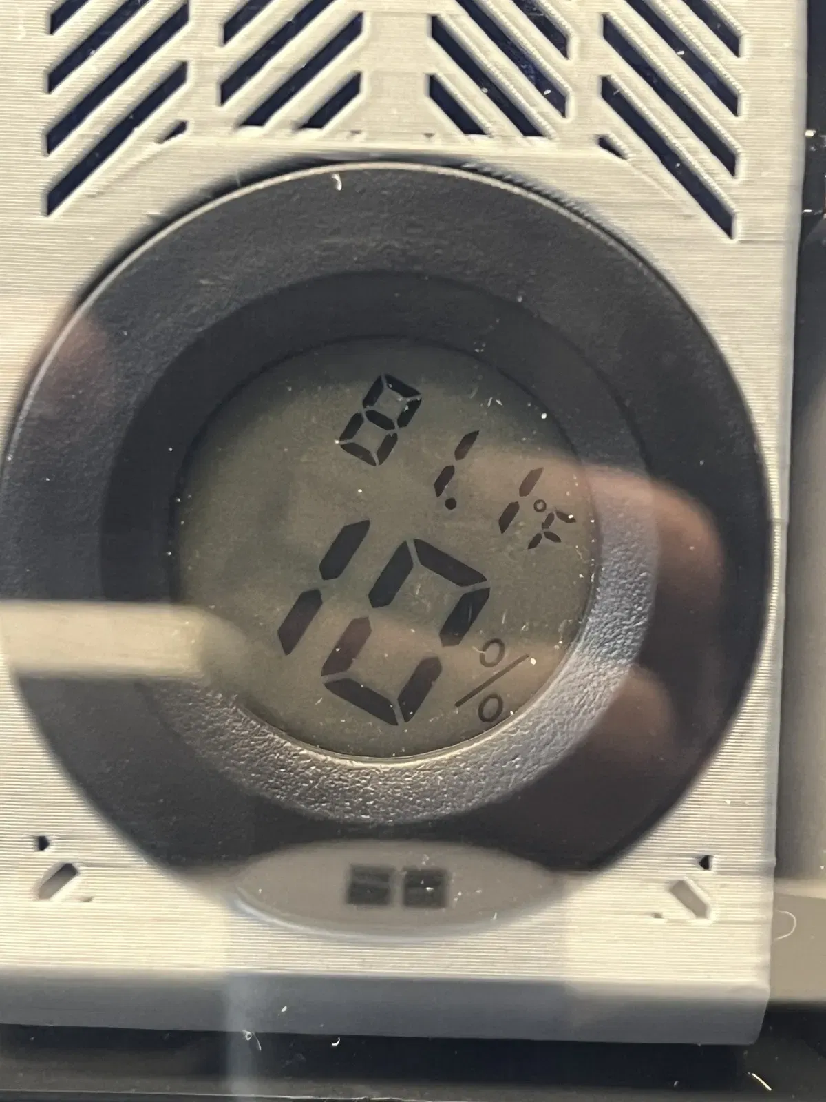 Gom chung khay hút ẩm AMS và mẫu Dry Pod có kèm ẩm kế lại thành một bản in. Sau một ngày thiết lập cái này với hạt hút ẩm mới (https://www.amazon.com/dp/B013L31PQ0?psc=1&ref=ppx_yo2ov_dt_b_product_details) thì hệ thống có vẻ hoạt động rất tốt. Nhiệt độ trong gara nhà em không có sưởi/làm mát là 69 F / 64% độ ẩm. Bên trong AMS là 81 F / 10% độ ẩm.