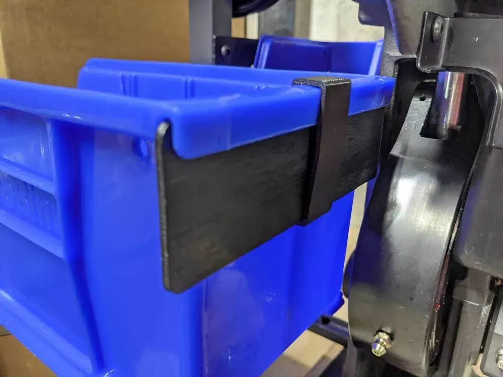 Chán cảnh làm rớt khay hứng đạn, người dùng đã chế tạo một chiếc kẹp nhỏ gọn. Thiết kế này ban đầu dành cho RL1100, nhưng có khả năng tương thích cao với dòng máy 1050, giúp cố định khay hứng đạn chắc chắn hơn.