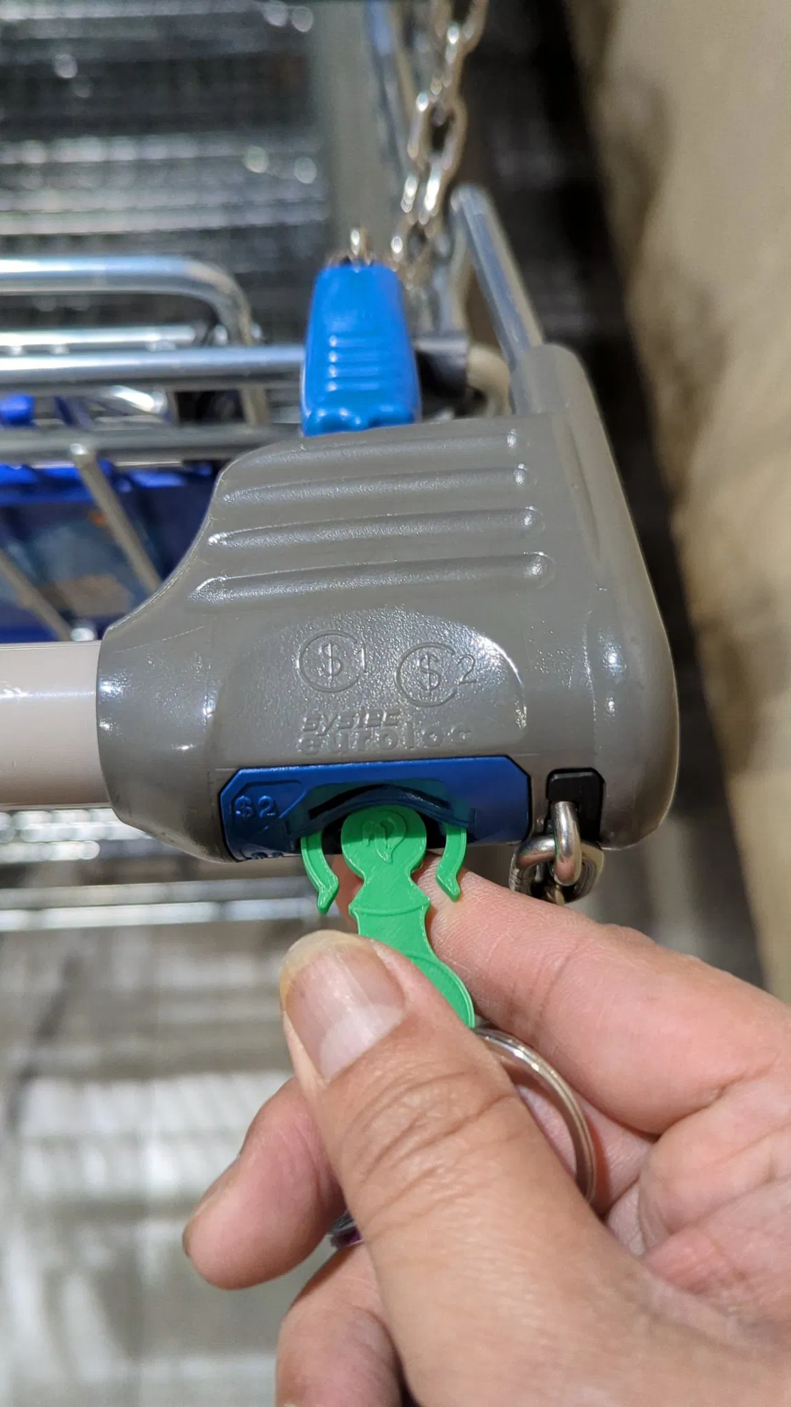 Một đồng xu xe đẩy có thể thoát ra dựa trên kích thước của đồng xu 1 đô la Úc. Cắm nó vào khe cắm đồng xu xe đẩy, sau đó bóp hai tay nhỏ và lấy nó ngay lập tức! Mặt bên kia thực sự là một đồng xu 2 đô la!