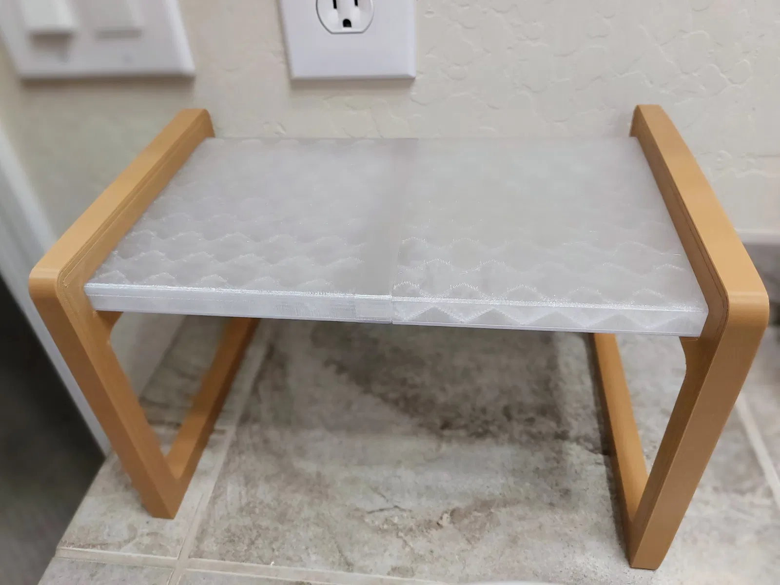 Thiết kế đơn giản 3 (hoặc 4) mảnh với độ chính xác chặt chẽ cho khớp ma sát, không keo hoặc các kết nối không cần thiết. Nếu bạn có một máy in đủ lớn (hoặc cần một kệ đủ nhỏ), chỉ cần sử dụng “kệ trên A.” Nếu bạn đang sử dụng một Mini, in A và B với *không có lớp trên cùng, và không có độ đầy* (ít nhất là 15mm trên cùng) để kết nối như đã chỉ ra.