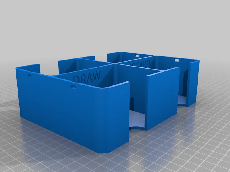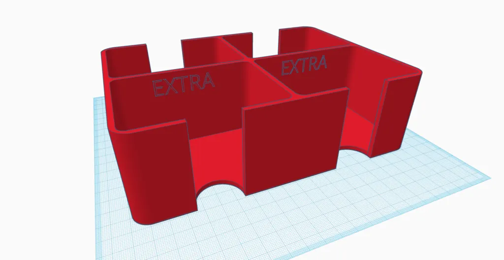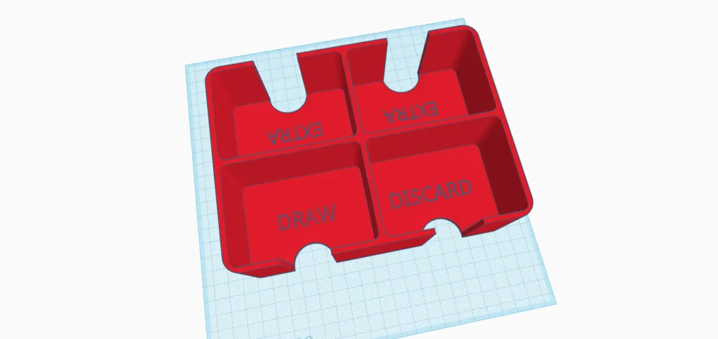 Yêu cầu của ba mẹ tui á là cái hộp này phải có chỗ để cất bài chưa chia, chỗ để bài rút, và chỗ để bài bỏ. Ba mẹ tui muốn cái hộp này có thể chứa được 6 bộ bài trở lên. Hai cái chỗ "Extra" á thì có thể chứa được tới 3 bộ bài (tất nhiên là hai chỗ còn lại cũng chứa được từng đó luôn).