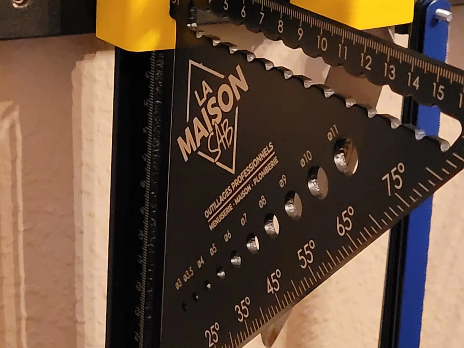 Các file stl làm sẵn là cho thước vuông của tôi từ MAISON, nhưng bạn có thể dễ dàng tùy chỉnh cho nhu cầu của mình bằng OpenSCAD, file cũng đã được đính kèm. Bạn sẽ cần thư viện BOSL2 (https://github.com/BelfrySCAD/BOSL2