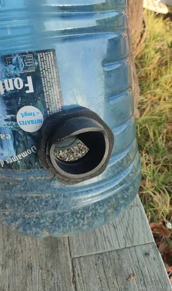 Cái này là cái chai đựng gà tự động, có thể gắn lên xô lớn hoặc chai nước của công ty. Khoan cái xô, gắn cái vòi, siết con ốc lại là xài được.