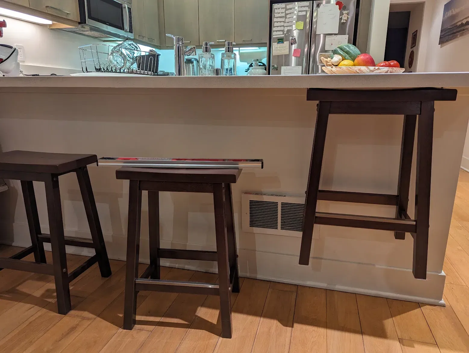 Gắn bên dưới một quầy để dễ dàng lưu trữ phân trên sàn để hút bụi hoặc quét đơn giản hơn.