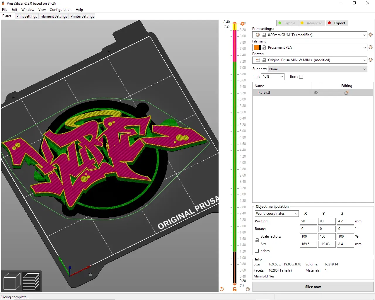 Khám phá bản in 3D mẫu graffiti "Kure" của Causeturk, được tạo ra bằng cách thay đổi màu theo chiều Z trên Prusa Mini. Hướng dẫn chi tiết và liên kết vật liệu in đi kèm.