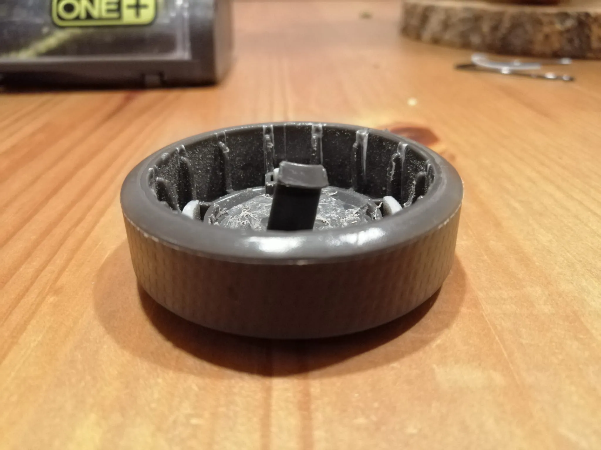 Hàng xóm tui ghé qua tui với cái bánh xe bị gãy của máy hút bụi Ryobi R18SV7-0 nhà ông ấy.