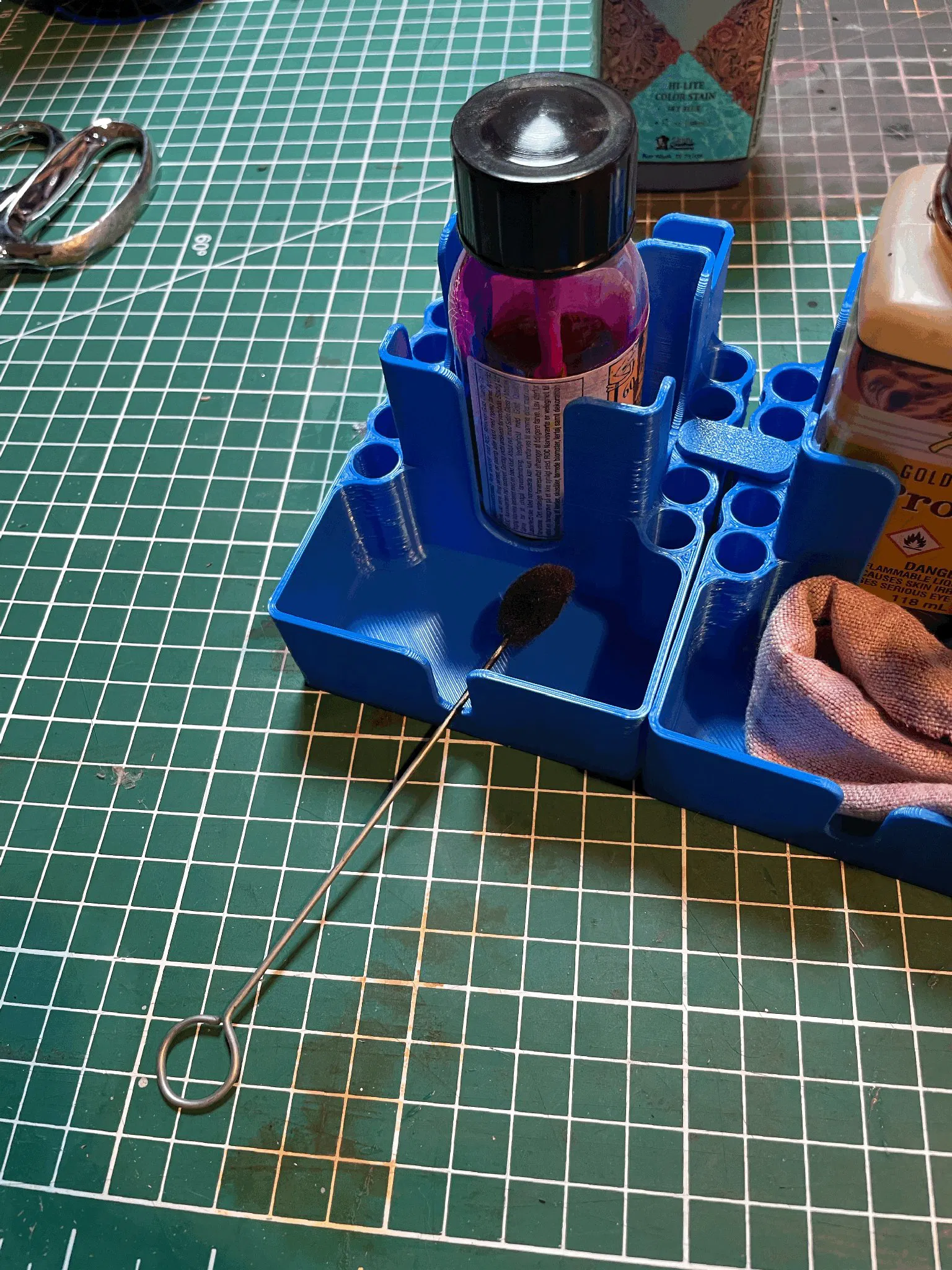 Một trạm module cho các chai thuốc nhuộm da phổ biến nhất, nơi bạn có thể để giẻ lau, cọ len và cọ. Giải pháp chống đổ chai nhuộm da, với nhiều tính năng tiện lợi như giá đỡ cọ, ngăn chứa nắp và thiết kế module dễ dàng tùy chỉnh. Hỗ trợ nhiều loại chai nhuộm da phổ biến như Fiebings Pro, Tandys Eco và ROC.