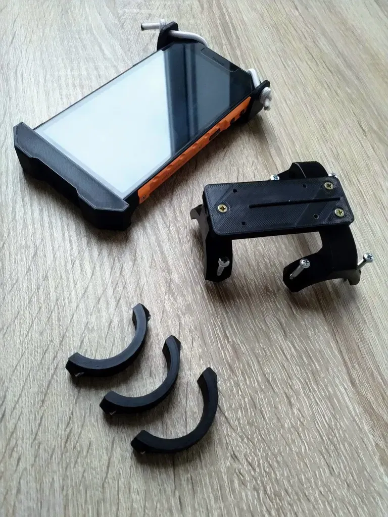 Giá đỡ xe đạp thay thế cho Ulefone Armor X5, phù hợp ghi đông 32mm/35mm. Cần ốc M3, vít chìm và dây co rút để lắp. Khuyến khích in bằng PET-G hoặc PLA. Hỗ trợ cần thiết, infill 30-40%.