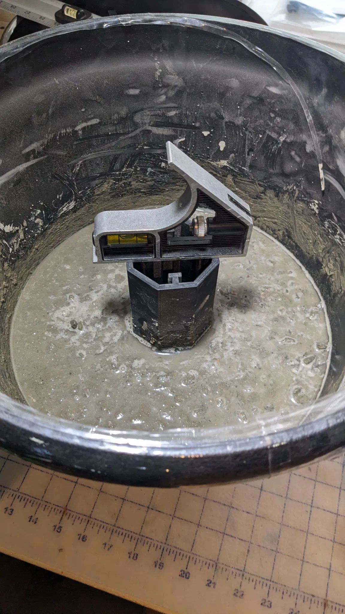 Vợ tui muốn để cái cây thông nhỏ này vô chậu bông nên tui chế ra cái adaptor này, đổ bê tông vô chậu luôn.