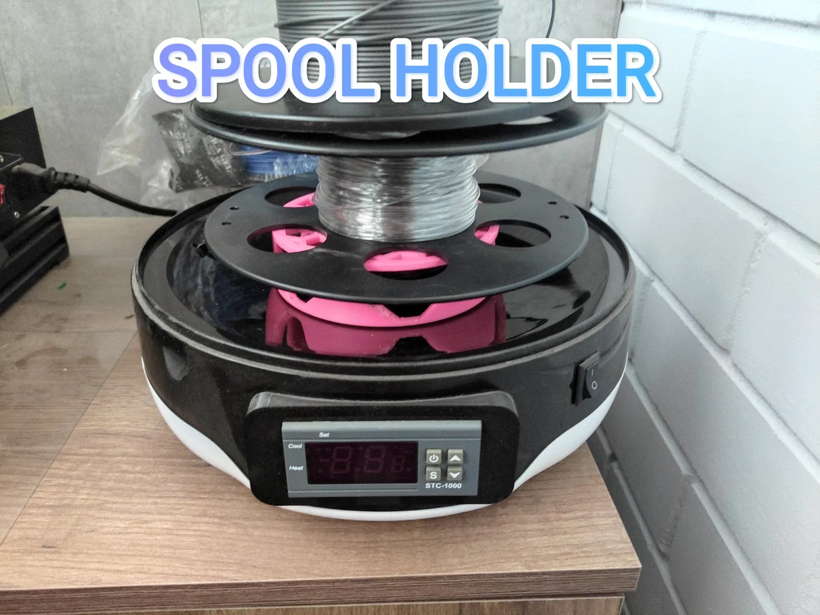 Cái giá đỡ cuộn dây filament bên trong máy sấy nhựa, được làm từ máy sấy rau củ. Cung cấp luồng khí ấm.