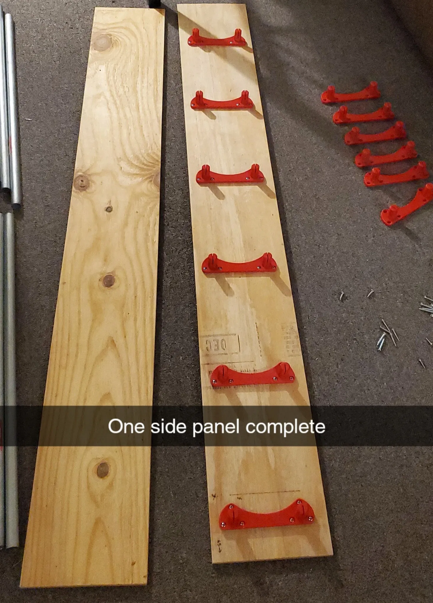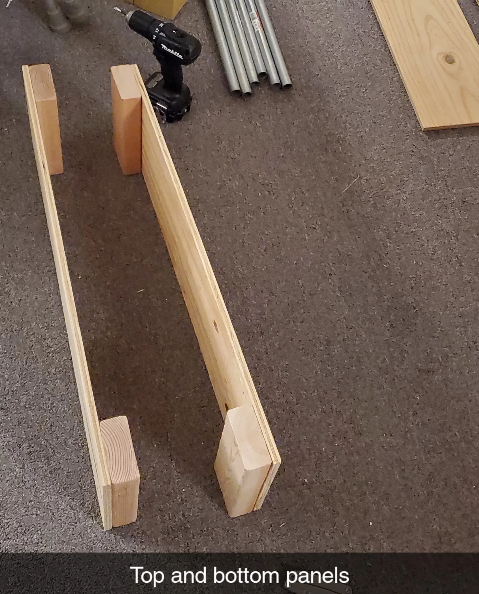 - 4x tấm plywood - được sử dụng làm khung - chiều rộng tối thiểu 8.5" - chiều dài tấm phụ thuộc vào chiều dài ống và số lượng kệ
