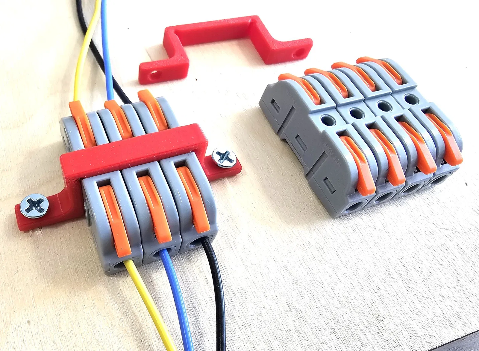 Giá đỡ dạng đòn bẩy cho đầu nối dây, in nhanh và chắc chắn. Dễ dàng tùy chỉnh số lượng đầu nối. Thiết kế bo tròn cạnh giúp in không cần hỗ trợ.