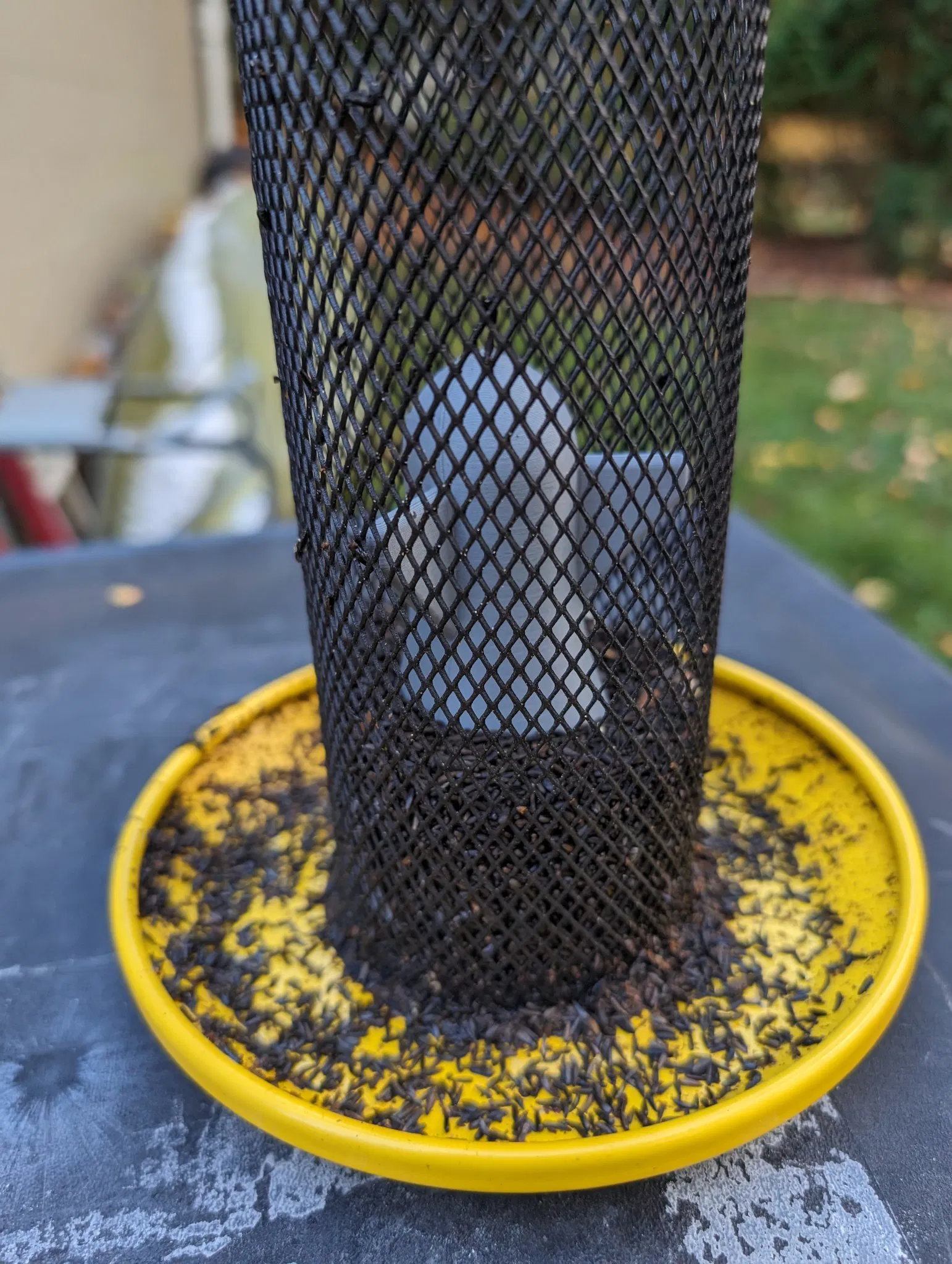 Cái bộ phận chèn này giúp hạt giống nằm gần rìa của cái khay ăn, thay vì để lại một khoảng trống mà chim không thể nào tới được. Tui thiết kế nó để khớp với cái khay này, nhưng mà nó cũng nên xài được với bất kỳ khay ăn nào dùng ống 2 ¾ inch đó nha.