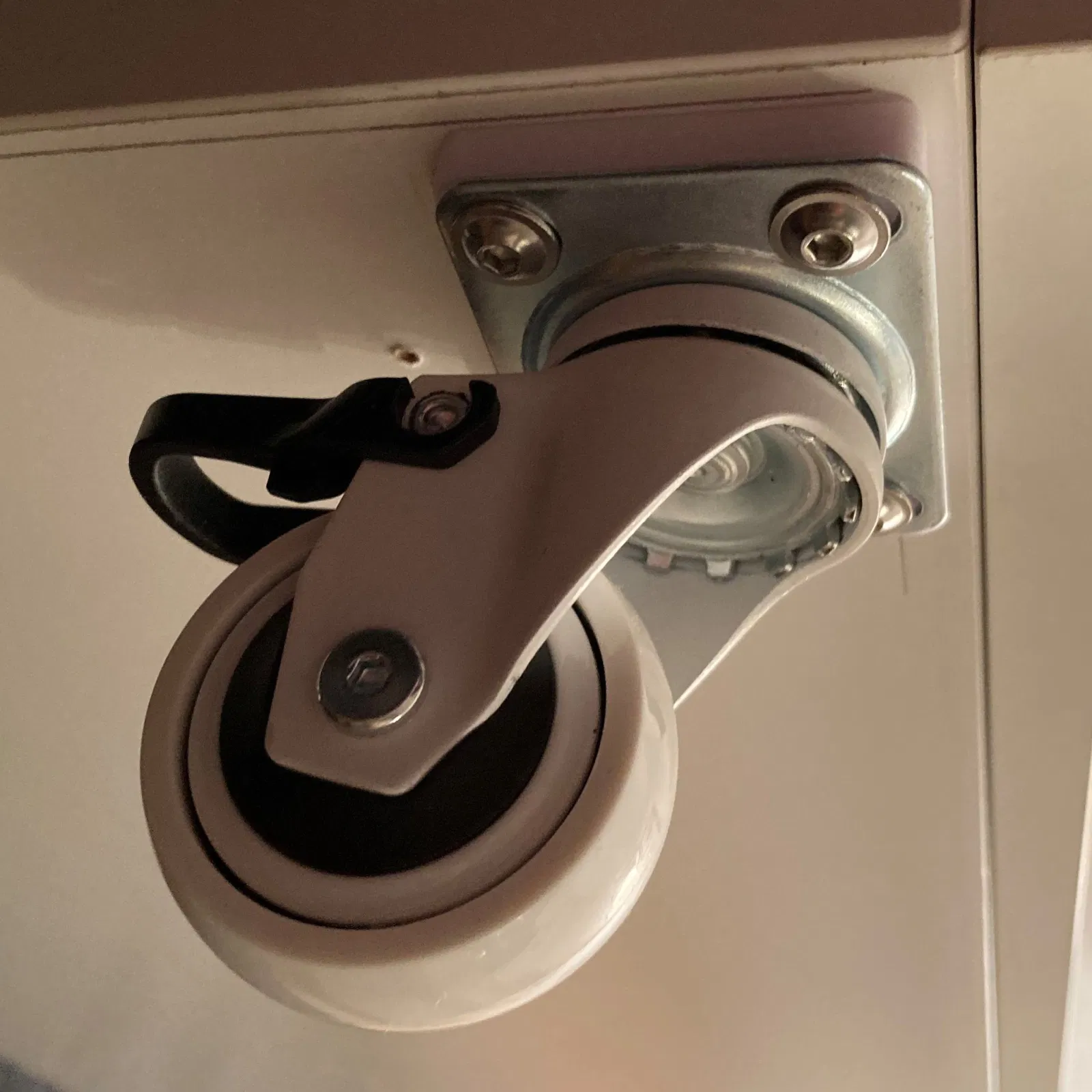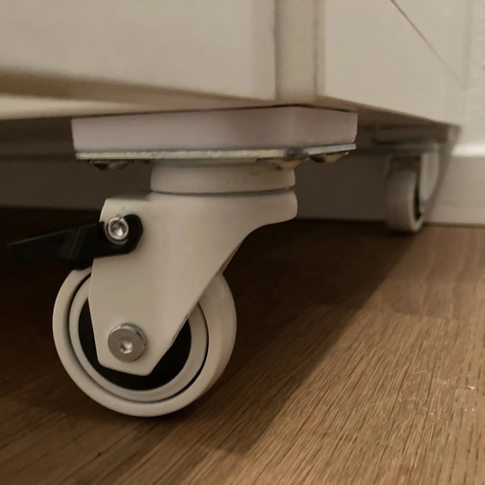 Đế chuyển đổi giúp gắn tủ IKEA BESTÅ lên bánh xe castor. Đế này dùng vít M8 bắt chìm vào tủ và vít M4 để chống xoay. Bánh xe castor gắn vào đế chuyển đổi bằng vít M5. Cần 4 bánh xe castor, vít M8, M4, đai ốc M5 và vít M5.