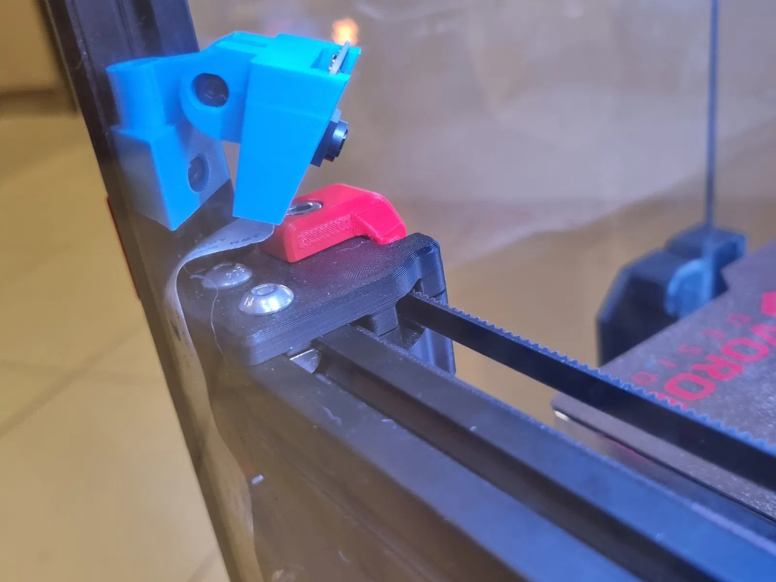Cái mẫu này gồm 3 bộ phận in 3D, 1 con ốc 16x3mm và 1 con ốc 20x3mm, cùng với 2 ốc nhiệt 3mm và có cách để gắn vào thanh nhôm định hình 2020 của bạn.