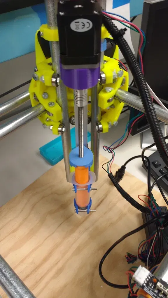 This extruder was created to be able to print in various viscous mediums, such as ceramics, pancake batter, Nutella, and frosting. It is simple to manufacture, and relies on the following non-printed parts: