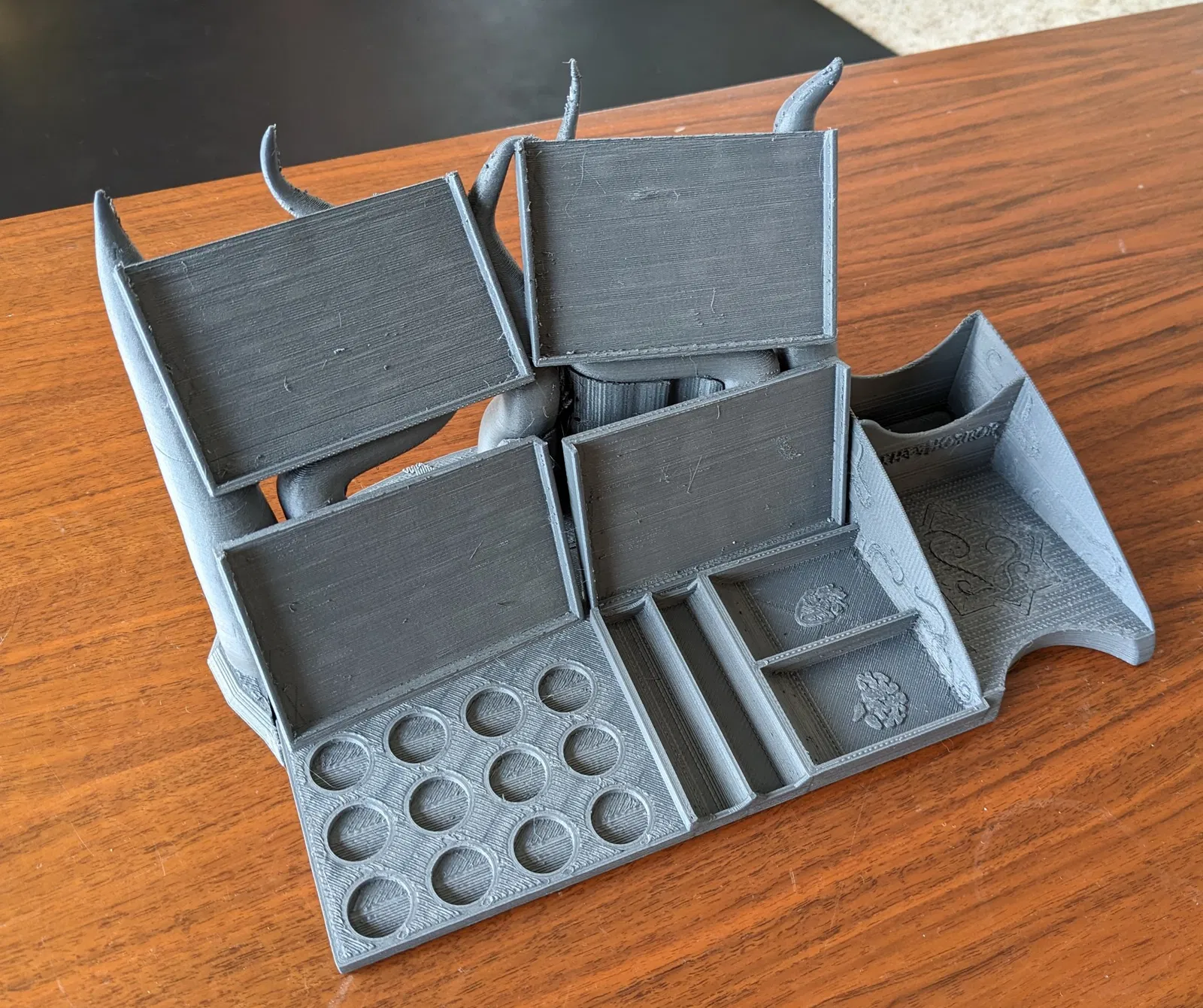 Một bảng điều khiển cho trò chơi thẻ Arkham Horror. Bản phối lại này kết hợp hai mẫu thành một, giúp bạn tổ chức thẻ bài tốt hơn. Nhớ in có hỗ trợ để có kết quả tốt nhất nhé!