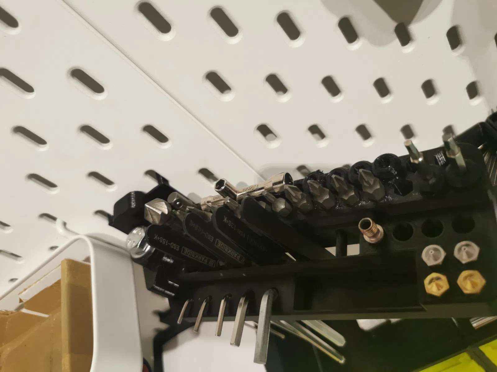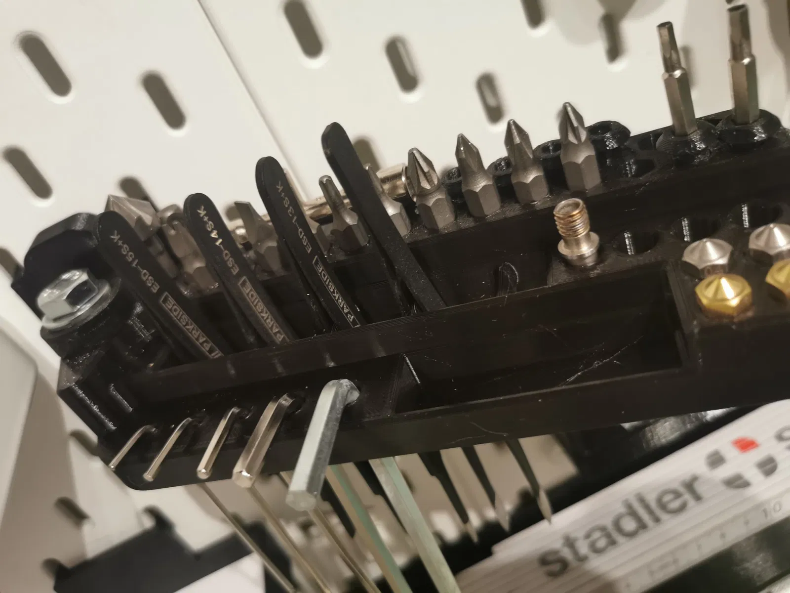 Cái rack này gắn vô bảng Skadis nha mọi người ơi. Cái này là để giữ dụng cụ, đồ nghề các kiểu đó. Nhớ tải thêm cái holder ở link kế bên để xài chung nha, combo này tiện lắm luôn á!