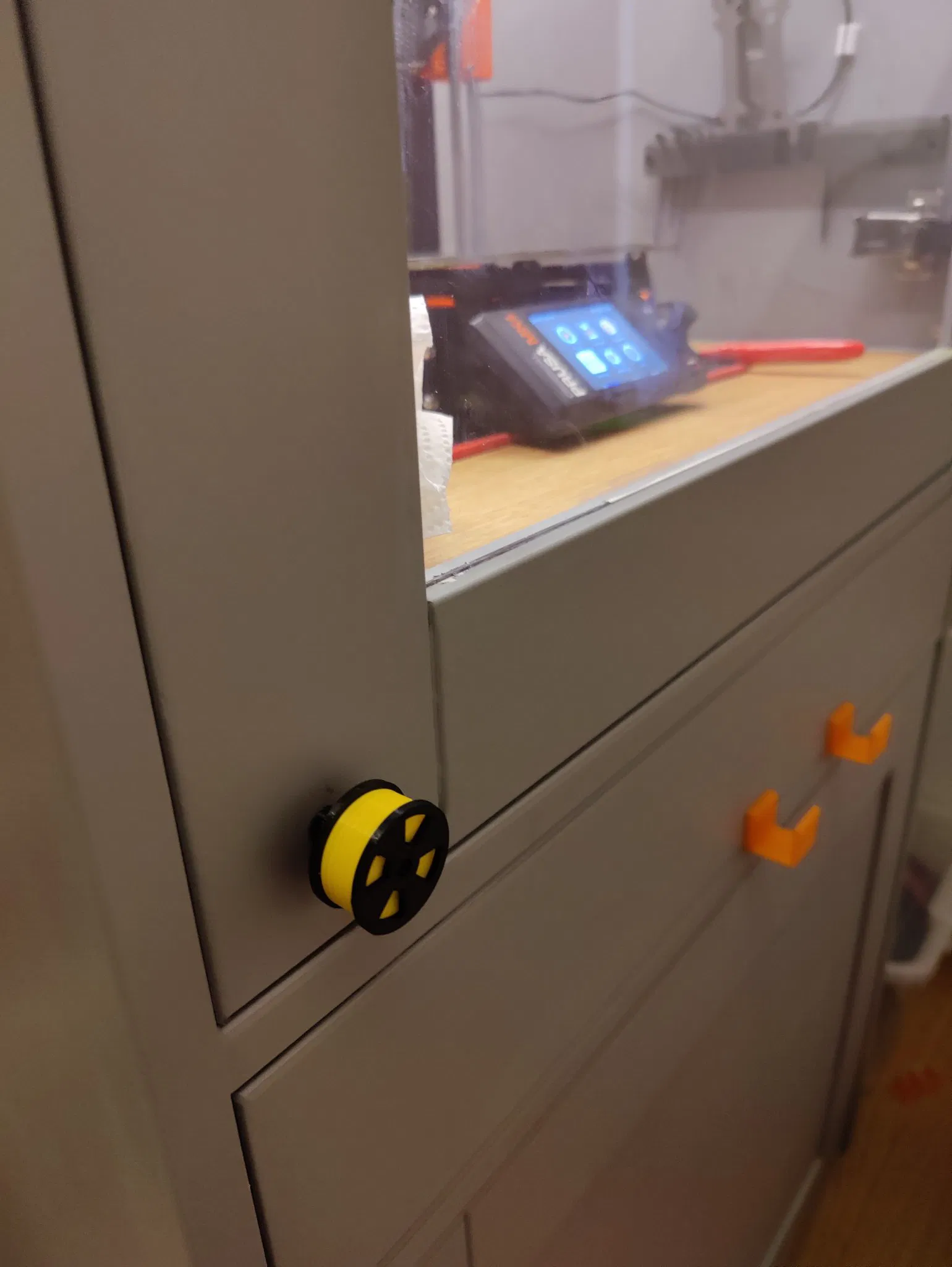 Một tay nắm đẹp để đựng cuộn dây filament, dùng cho cửa tủ hoặc bất cứ thứ gì bạn thích. Thiết kế độc đáo giống cuộn dây filament, phù hợp làm tay nắm cửa hoặc tay nắm tủ. Có hướng dẫn in chi tiết kèm theo.