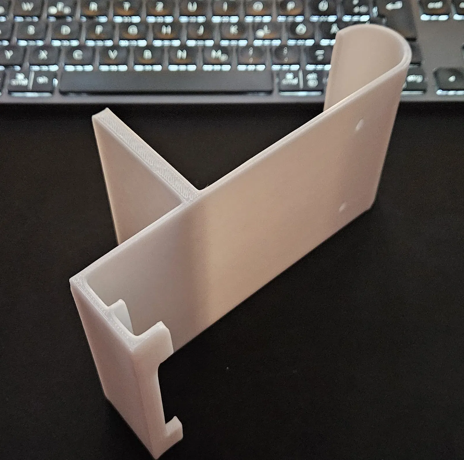 The model is intended for the bathroom and should be printed in PETG. The idea is to attach it to a shower rod, the diameter on which it can hang is 26mm. It is best to print on a raft - the adhesion should be maximized because the model bends upwards due to the long straight line. The holder can also be attached to the rod using the holes.