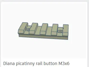 Ray picatinny gắn phía trước cho mẫu blaster HT Diana. Mẫu này là bản remix, được tùy chỉnh từ mẫu gốc của Defense distributed. Bạn cần 2 vít M3x6mm để lắp.