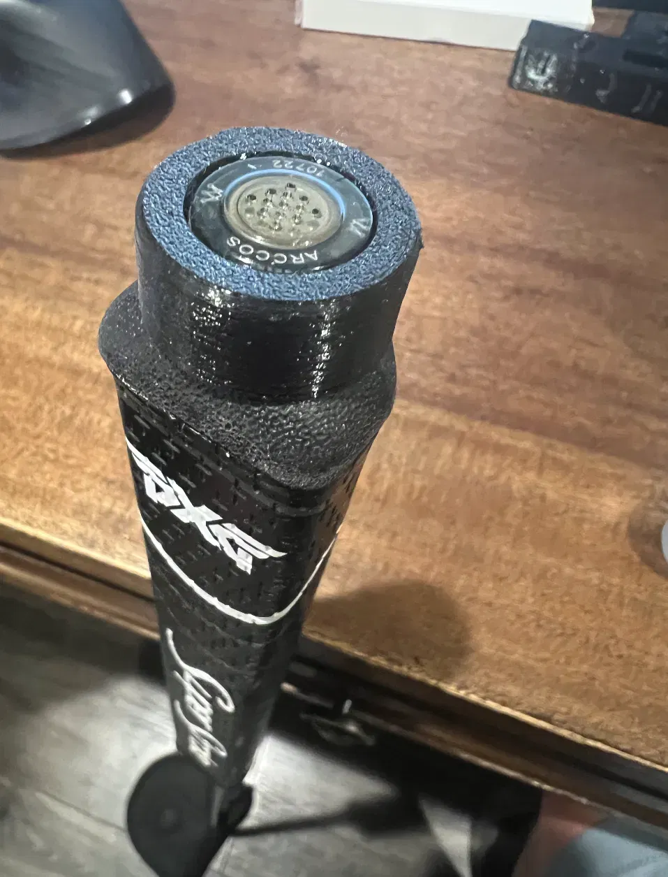 Thế là tui chế cái adapter, cho con ốc của Super Stroke luồn qua, rồi gắn sensor Arccos lên trên, cuối cùng là thêm cái nắp nữa.