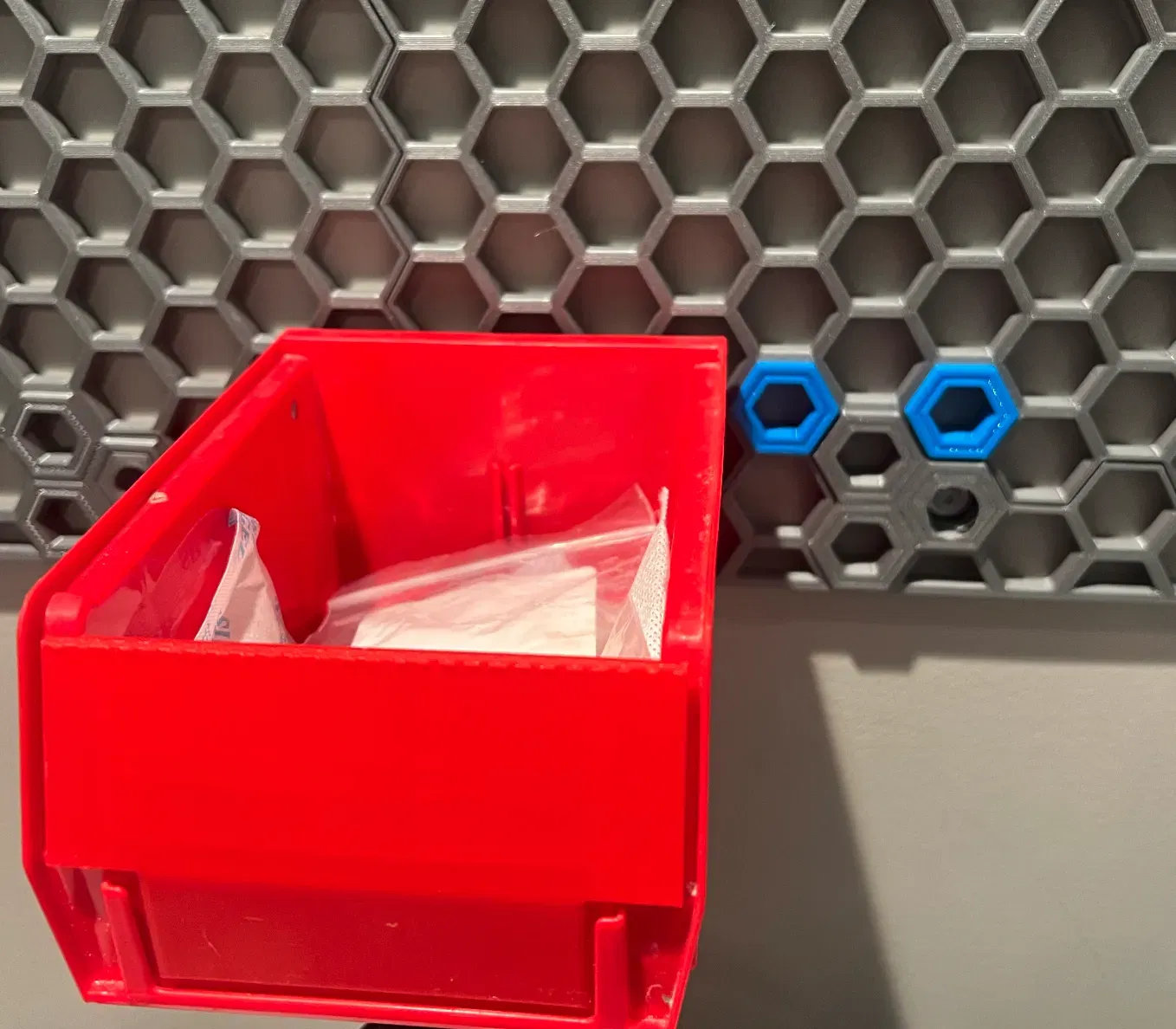 Giá đỡ thùng Akro cho tường HSW. Chúng được bố trí theo cách mà bạn có thể xếp chồng chúng cạnh nhau và tạo thành một thanh ray.
