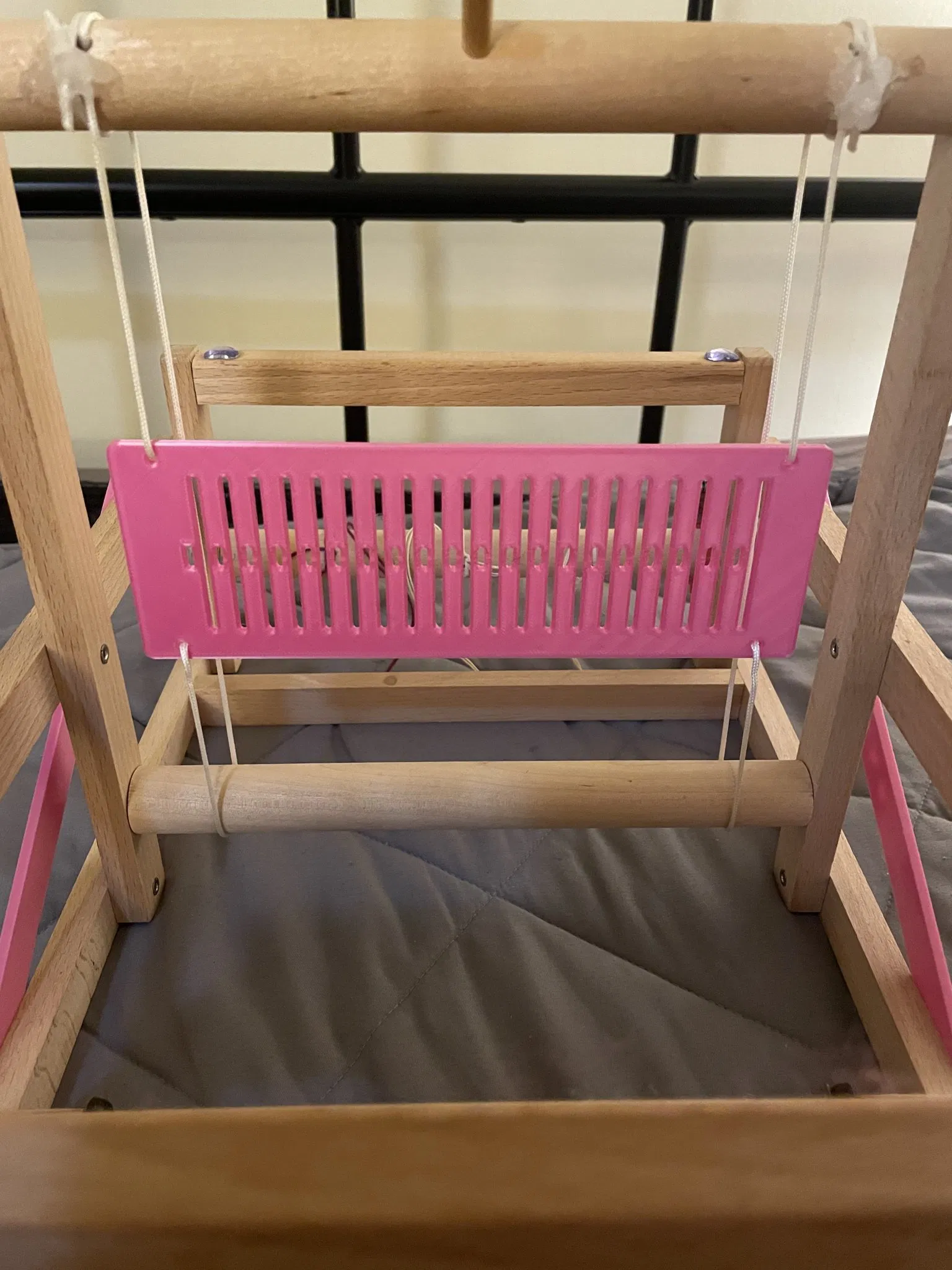 Heald dệt cứng thay thế cho máy dệt đồ chơi Brio hoặc tương tự. Mẫu này có thêm lỗ và rãnh, cho phép sử dụng 40 sợi dọc thay vì 38, phù hợp với máy dệt Brio có 40 rãnh đập.