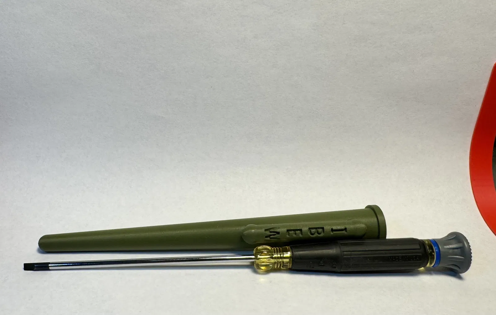 Cái bao đựng/vỏ này được tạo ra cho tua vít đầu cuối Klein 614-4 mà tôi hay mang đi làm. Nó in đẹp nhất khi có giá đỡ ở phần kẹp túi phía dưới và phía trên.