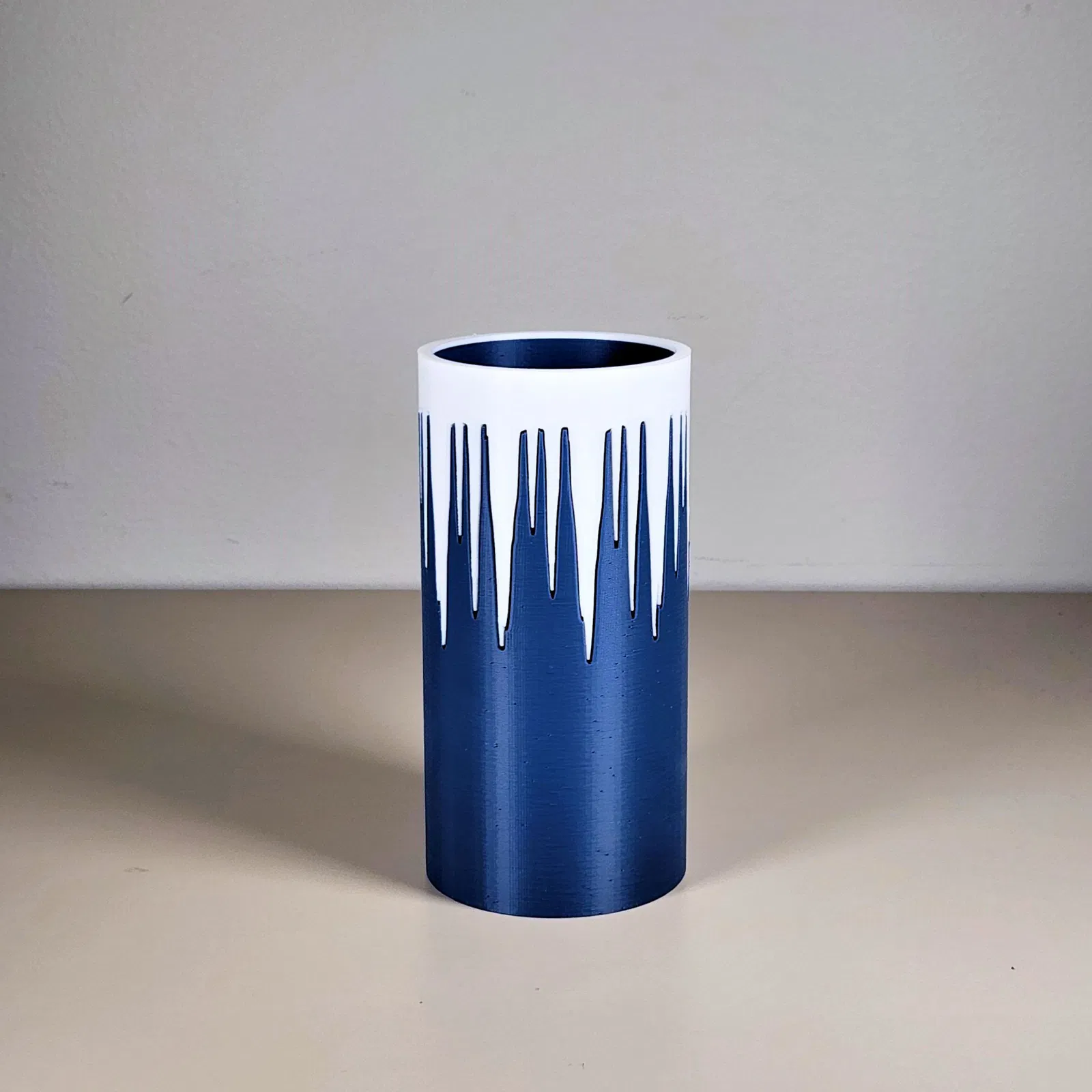 Chiếc bình hình chóp băng này được thiết kế độc đáo, in thành hai phần riêng biệt rồi ghép lại một cách dễ dàng. Đặc biệt, bạn không cần dùng đến support khi in, giúp tiết kiệm vật liệu và thời gian.