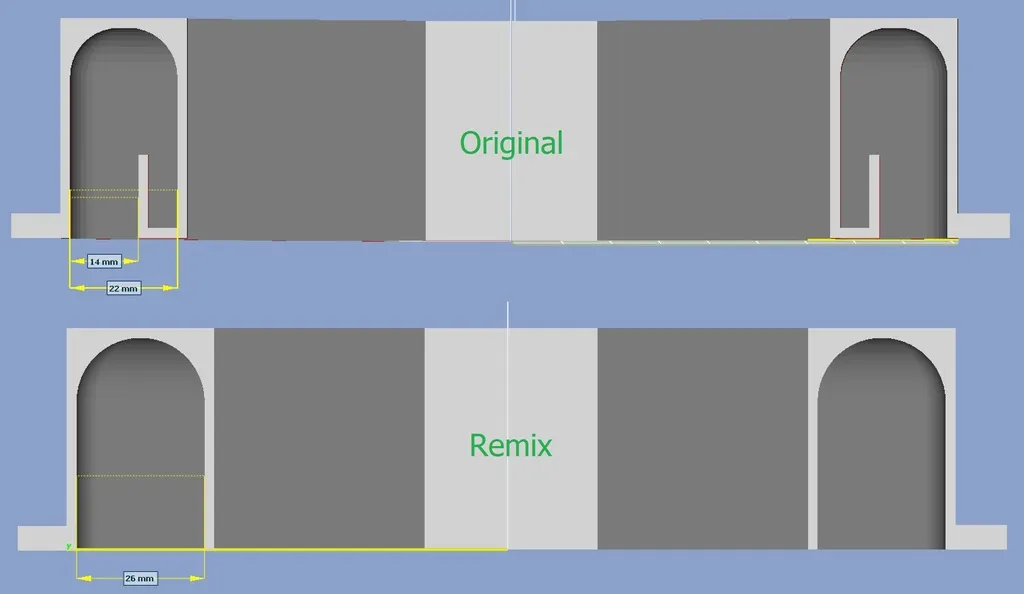 Nên tui làm lại cái mới từ đầu, bỏ mấy cái móc đi mà không gian bên trong thì tăng từ 22mm lên 26mm.